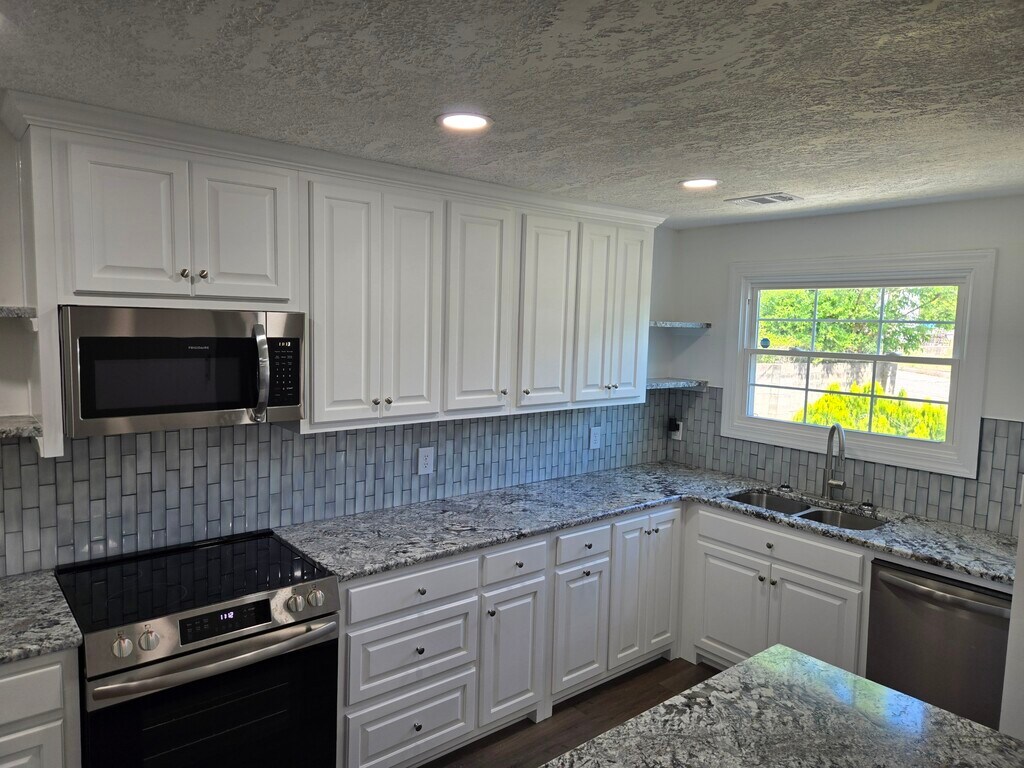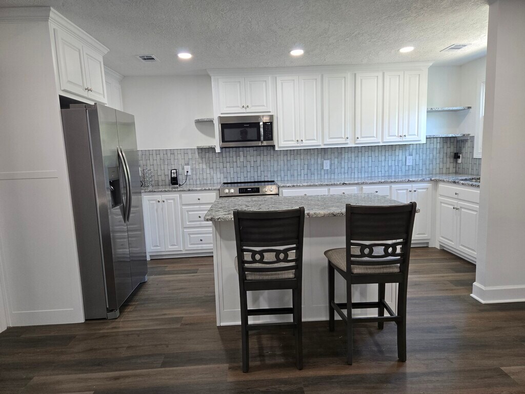 This beautifully remodeled home features 2 bedrooms, 1 bath, new kitchen with custom cabinets, granite countertops, island with seating, and stainless appliances. Spacious living area with door leading to large deck. Washer & dryer are include. Available now.