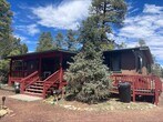 Three bedroom, two full bathroom cabin home on wooded acre+ lot in Overgaard available for immediate move in for a 6 month lease term! The home features a split floorplan, separate dining and living room areas, and a spacious kitchen with matching black appliances, an R/O system & laminate wood flooring. The primary bedroom has a walk-in closet and en-suite bathroom with a soaking tub. There is a quaint covered front patio and ample room to park multiple vehicles. The backyard offers incredible forest views, a pergola and fire pit area, a fenced dog run, a treehouse, and enough space to truly enjoy the tranquility of life in Arizona's high-country. There is a wheel chair ramp, and the guest bathroom is ADA compliant. Bring your fishing poles, kayaks, paddle boards, UTVs/ATVs, and enjoy all that the the rim country has to offer with nearby lakes, hiking and off-roading trails. This property is available for lease through April 30th, 2026, so whether you're looking to relocate full-time or to have a second home for your weekend getaways, the cool weather and tall pines of Heber-Overgaard are waiting for you. Listed by Firefly Property Management, LLC. To view a video tour of the home, please copy and paste the following link into a new browser/tab: