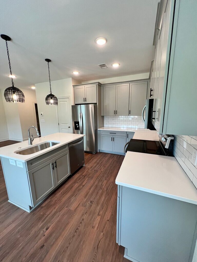 East Longleaf luxury 2 story town home with 3 bedrooms and 3.5 baths. Open concept kitchen/dining and living room. Kitchen comes fully appointed with stainless appliances, beautiful cabinetry, and plenty of pantry/closet storage. Half bath located on main level. Covered back patio that is spacious and private. 2nd level has 3 large bedrooms, each with their own ensuite. Bathrooms have ample counter and closet space, and include tile tub surrounds. LVP throughout, NO carpet. One car garage on main level. Conveniently located in Auburn, close to I-85, and a short drive to Opelika. No Fire Pits allowed per association. No cats allowed, small dogs considered. Virtual Walkthrough: