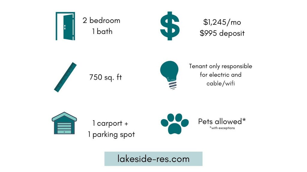 Tucked in a peaceful residential neighborhood in Grandville, this 2 bedroom, 1 bath apartment at Grandvilla Apartments features a large living room that leads into an open kitchen. There is plenty of closet storage space throughout the apartment including a kitchen pantry, a coat closet, and a linen closet. All units come with a sizable and fully enclosed garage! The lower units feature a walk-out patio and the upper units have an oversized premium deck. Units start at $1,345 per month and include gas, heat, water, sewer, trash, recycling, and parking. Residents would be responsible for electricity and any wifi/cable options you should want. There is a laundry facility on-site. The security deposit is $995.45 and we have a $50 application fee. Pet fees apply if applicable. Listing Link: Showings Availability: Monday-Friday by appointment only. Additional information below. Bedrooms: 2 Bathrooms: 1 Rent: $1,345 Deposit: $995.45 Application Fee: $50 (requirements below) Utilities Included: Gas, Heat, Water, Sewer, Trash, Recycling and Parking Resident Utility Responsibility: Electricity and Cable/Internet (optional). 3D Tour: YouTube video tour: When is this available? You can see all of our available properties and when they are available here: lakeside- Can I see the property? We have showing times available Monday through Friday. To schedule a tour, visit our website (Lakeside-), select an available apartment, and then select ‘schedule tour’. If you have any problems scheduling a tour, give us a call ) and we can text you a direct link. You will only be able to select a date that is available for a tour. If you are looking at an apartment available 30-60 days out, it may still be occupied and unavailable for immediate tours. We currently only show vacant apartments to respect our residents' privacy. How do I apply? You can apply directly from our website: Lakeside- . Click on the listing on the home page and select "Apply Now" What are the requirements to qualify? Credit Score: 650, Income: 3x Rent in Gross Income, Good Rental History (no evictions or outstanding balances with previous landlords), National Background Check. Application fee: $50 per adult. Can I bring a pet? We allow cats and most dogs under 50lbs. Pet fees do apply. Please inquire for specific details. Do you accept section 8 or another form of vouchers? We are not a low-income or government-assisted property. However, we will work with any assistance program as long as you qualify through the application process (see below). What is the parking situation? Each apartment includes a reserved covered parking space as well as one open parking space for a total of two parking spots/vehicles allowed per apartment. Do I need to apply before I can see the property? No, we do not require that you apply before you tour. Our rentals tend to lease quickly. If you are worried about missing out on a property, we highly recommend you apply. Are there any hidden fees? We take pride in being upfront and honest on our pricing. The only additional fee we charge on top of the advertised price is for pets (if allowed at the property). No gimmicks here. Is the first month’s rent prorated? You better believe it! By submitting your information on this page you consent to being contacted by the Property Manager and RentEngine via SMS, phone, or email.