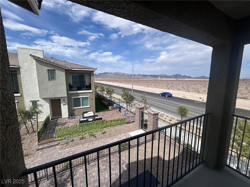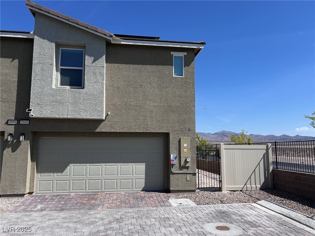 This modern home is on the edge of Las Vegas with amazing views of the desert. Floors are wood laminate and carpet. The kitchen features granite countertops and stainless steel appliances.