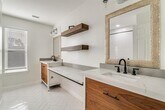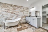 Available for 12-month lease Completely updated 5-bedroom, 4-bath home sitting on nearly ½ an acre, tucked away on a quiet, well-kept street in the private Creeks Crossing Estates neighborhood. This is not a cookie-cutter remodel. Inside, you’ll find light, modern flooring throughout, fresh carpet in the bedrooms, and updated lighting that makes every space feel bright and intentional. The bedrooms are oversized—the kind of room sizes you simply don’t see anymore. Downstairs is a second primary bedroom with ensuite bathroom or could be used as a private home office. The kitchen is built for both everyday living and entertaining, featuring an extended island with black quartz countertops, updated stainless steel appliances, a refrigerator, and a built-in wine chiller. It opens directly to the living area, so you’re always part of the action, with a striking fireplace as the centerpiece. Upstairs, the updated staircase and photo-gallery wall lead you to a huge primary suite complete with its own fireplace. The en-suite bath feels like a retreat, with a double shower and a claw-foot soaking tub. The three secondary bedrooms are just as impressive—large, bright, and filled with natural light. Step outside to an oversized backyard that’s an entertainer’s dream. Large, covered patio with plenty of space to host, relax, and actually enjoy the outdoors. Gated board on board fence with electric gate and plenty of parking with long driveway.