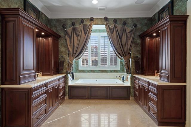 Welcome to your very own slice of paradise! This breathtaking Mediterranean-style home is a masterpiece that will captivate you the moment you arrive. From the lush, meticulously designed landscaping to the elegant, timeless architecture, every detail has been carefully curated for luxury living.Step inside and be wowed by soaring ceilings, a private office with custom built-in shelving and a dedicated desk area, and an exquisite formal dining room with a butler’s pantry for effortless entertaining. The inviting den space is drenched in natural light and features a cozy fireplace—perfect for relaxing with loved ones. The grand living area, complete with a second fireplace, flows seamlessly into the heart of the home—the chef-inspired kitchen. This culinary haven boasts an abundance of custom wood cabinetry, stunning granite countertops, and commercial-grade appliances, all designed with both style and function in mind.Retreat to your private, spa-like primary suite featuring a lavish ensuite bathroom, and let the first-floor guest suite offer comfort and seclusion. Upstairs, you’ll find a spacious bonus area and three additional generously sized bedrooms, ideal for family or guests. But the true showstopper is the backyard! Imagine hosting friends in your luxurious cabana complete with a full kitchen, private bathroom, and outdoor shower. The oversized, resort-style pool invites relaxation, while the lush landscaping and dog run add the perfect finishing touches to this outdoor paradise. Nestled on a large corner lot backing to a serene greenbelt, this home offers ultimate privacy and an unbeatable location. It’s more than just a home—it’s a lifestyle. Don’t wait to experience it for yourself! Home includes all of the following: Rental includes: Washer, dryer, theater room equipment, Sonos speaker system, 4 refrigerators, all window coverings including draperies. Pool table and furnishings in the billiards room and all backyard furniture.