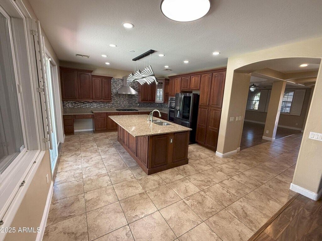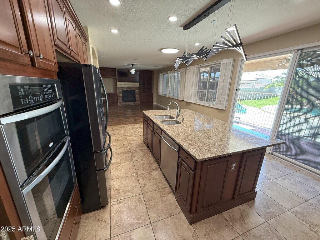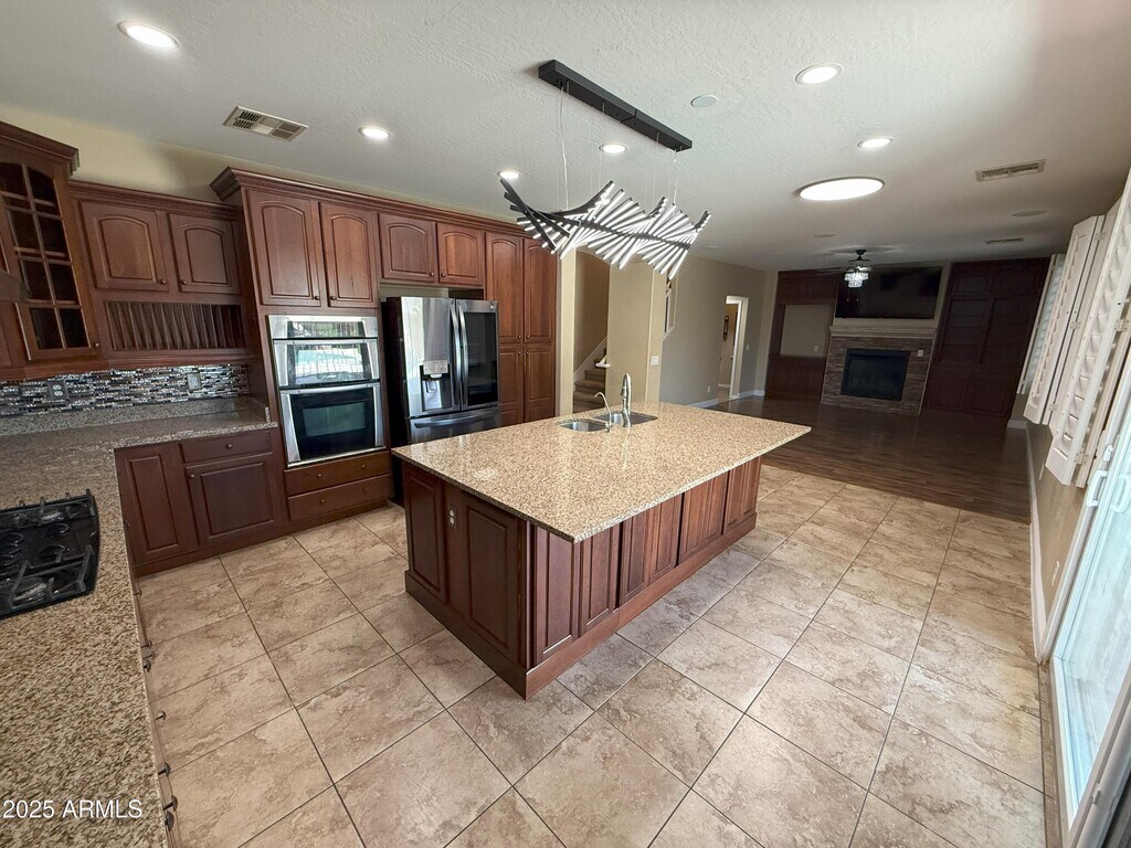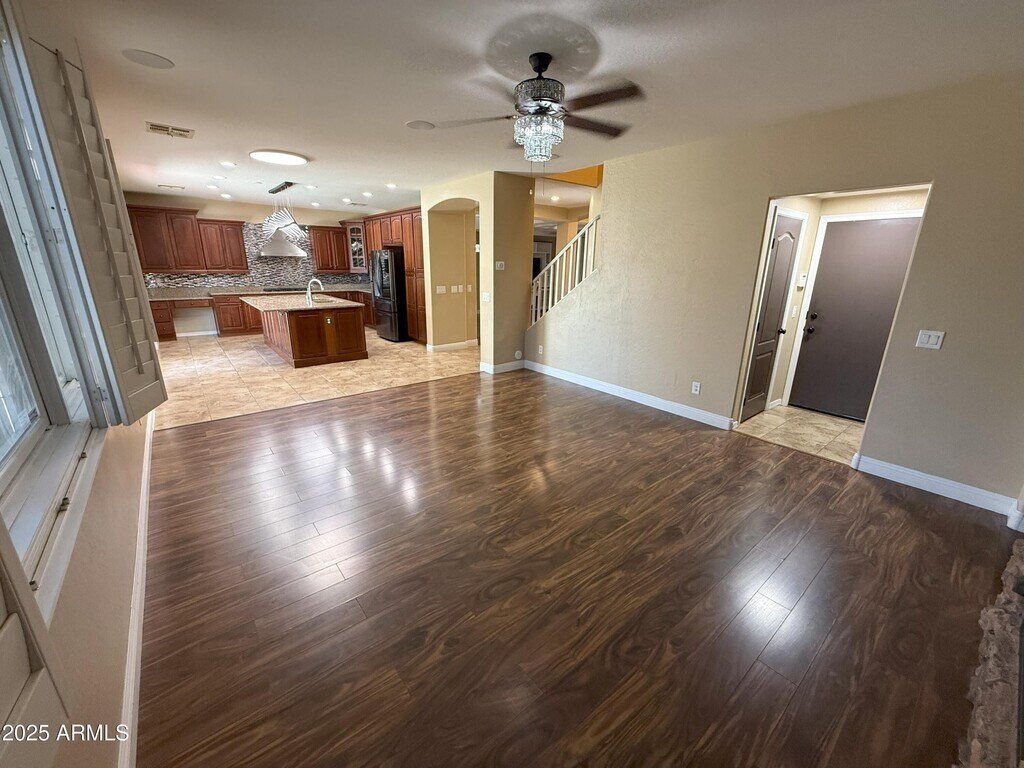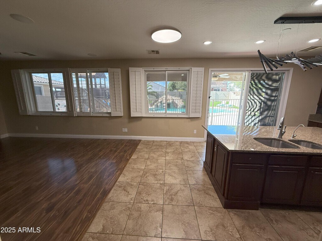 Ana BenavidesStep inside this inviting 4-bedroom,2.5-bath home nestled in Tartesso,Buckeyejust minutes from I‑10. A shaded front patio and lush,landscaped front yard welcome you. Inside,discover the charm of wood and tile flooring in high‑traffic areas and soft. The formal living and dining rooms,along with a family room featuring soaring coffered ceilings,create a warm and elegant atmosphere. At the heart of the home lies a chef's kitchen equipped with wood cabinets,granite counters,a center island with breakfast bar,stainless-steel appliances,pantry,gas cooktop,and a custom gourmet hood. The loft area includes surround sound,making it ideal for media,games,or relaxing evenings. Retreat to the spacious master suite boasting double sink and a generous walk-in closet. The finished garage accommodates two cars and blends seamlessly with functional design. Outside,your private backyard oaskis awaits - a sparkling pool with a water future,thrilling slide and cocoon-like grottom all set under Arizona's bright Skies. Solar panels offer energy savings and the home spacious spacious yard is pet friendly for you and your furry friends.