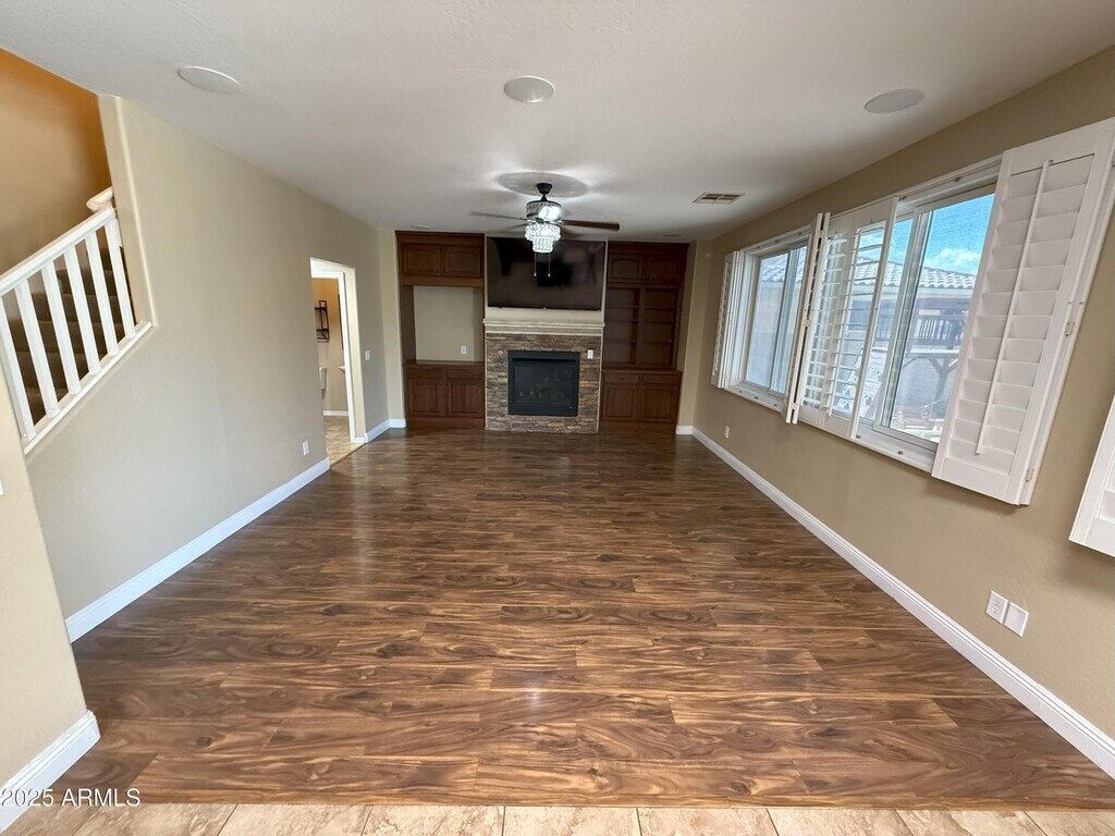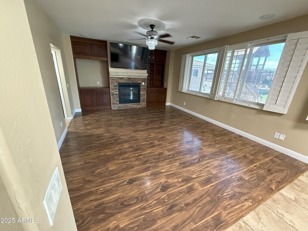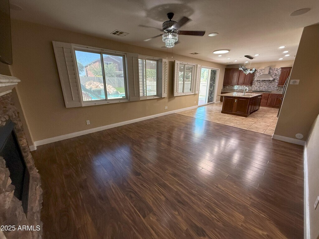 Ana BenavidesStep inside this inviting 4-bedroom, 2.5-bath home nestled in Tartesso, Buckeye just minutes from I‑10. A shaded front patio and lush, landscaped front yard welcome you. Inside, discover the charm of wood and tile flooring in high‑traffic areas and soft. The formal living and dining rooms, along with a family room featuring soaring coffered ceilings, create a warm and elegant atmosphere. At the heart of the home lies a chef's kitchen equipped with wood cabinets, granite counters, a center island with breakfast bar, stainless-steel appliances, pantry, gas cooktop, and a custom gourmet hood. The loft area includes surround sound, making it ideal for media, games, or relaxing evenings.Retreat to the spacious master suite boasting double sink and a generous walk-in closet. The finished garage accommodates two cars and blends seamlessly with functional design. Outside, your private backyard oaskis awaits - a sparkling pool with a water future, thrilling slide and cocoon-like grottom all set under Arizona's bright Skies. Solar panels offer energy savings and the home spacious spacious yard is pet friendly for you and your furry friends.