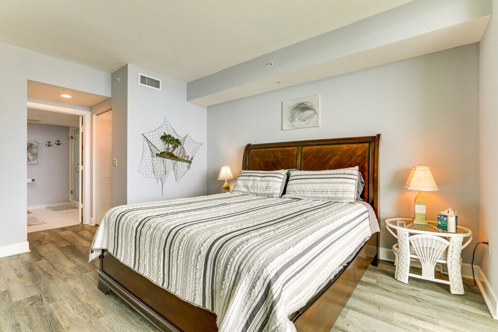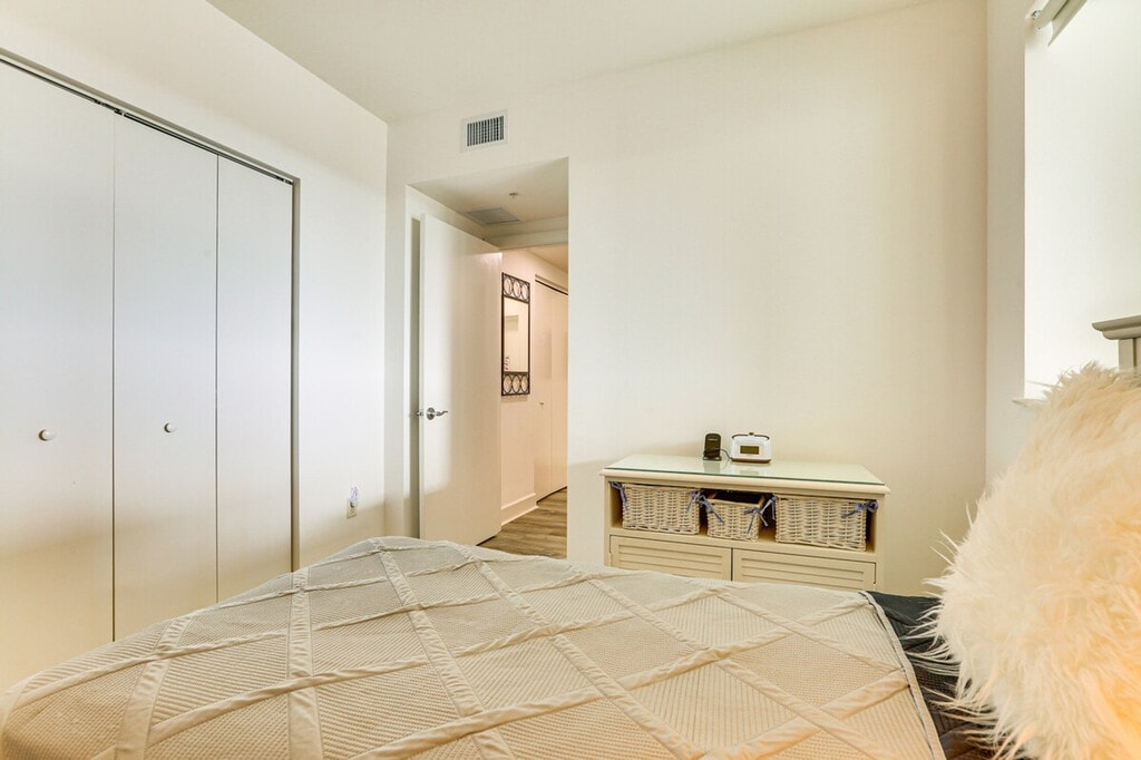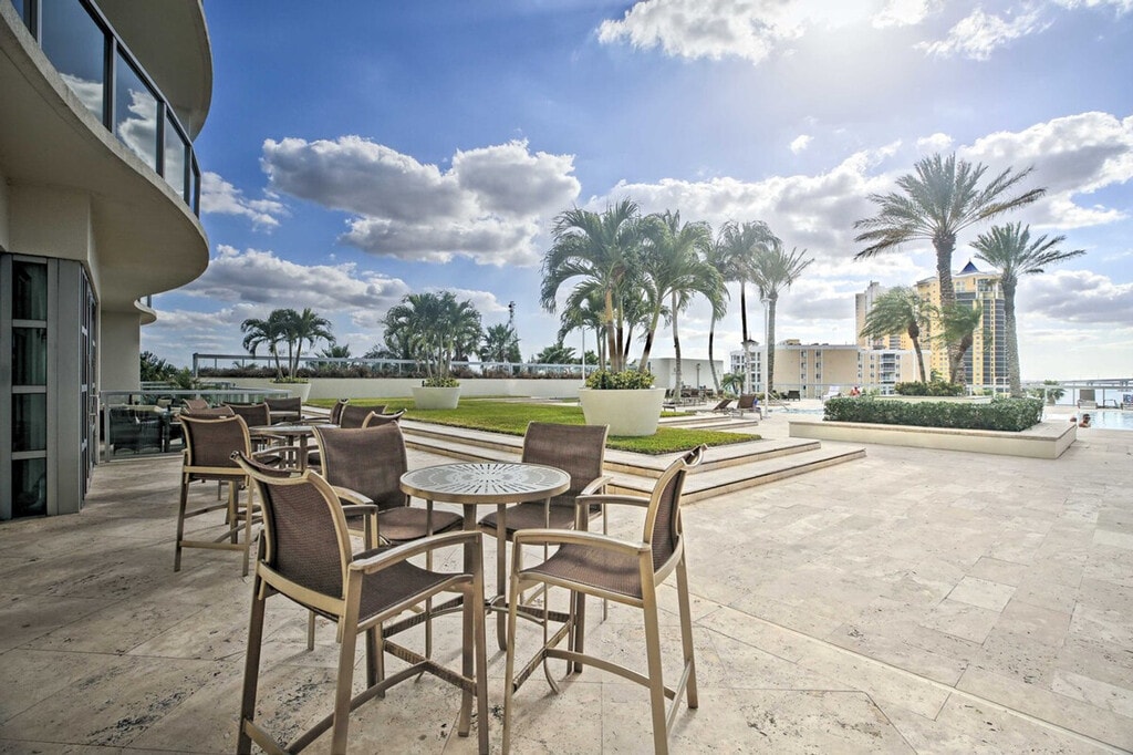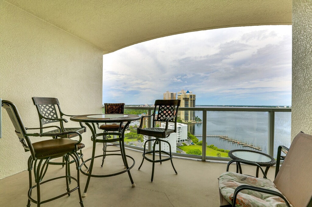 Feel at home in this 17th-floor, 2-bedroom, 2-bath condo in Fort Myers. With step-free access via elevator, this single-story apartment offers views of the Caloosahatchee River. This apartment features 2 Smart TVs, a small dining table/desk, a washer and dryer, beach towels, and a balcony with outdoor seating. The kitchen is equipped with a dishwasher, refrigerator, stove/oven, microwave, drip coffee maker, blender, air fryer, toaster, cooking basics, dishware and flatware, pots and pans, spices, trash bags, and paper towels. Complimentary toiletries and a hair dryer are provided. Enjoy access to the community's outdoor pool (heated year-round), hot tub, fitness center, and game/media room. Community guest parking is available on a first-come, first-served basis, and free street parking is also available. Located near an on-site downtown trolley stop, this apartment is ideally located to explore. Spend a day at the beach or kayak at Manatee Park. Smoking, pets, events, parties, and large gatherings are not allowed. Guests must be at least 30 years old to book. Additional fees and taxes may apply, and a photo ID may be required upon check-in. [SI]