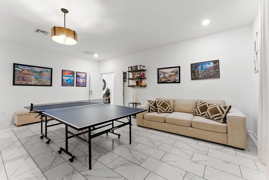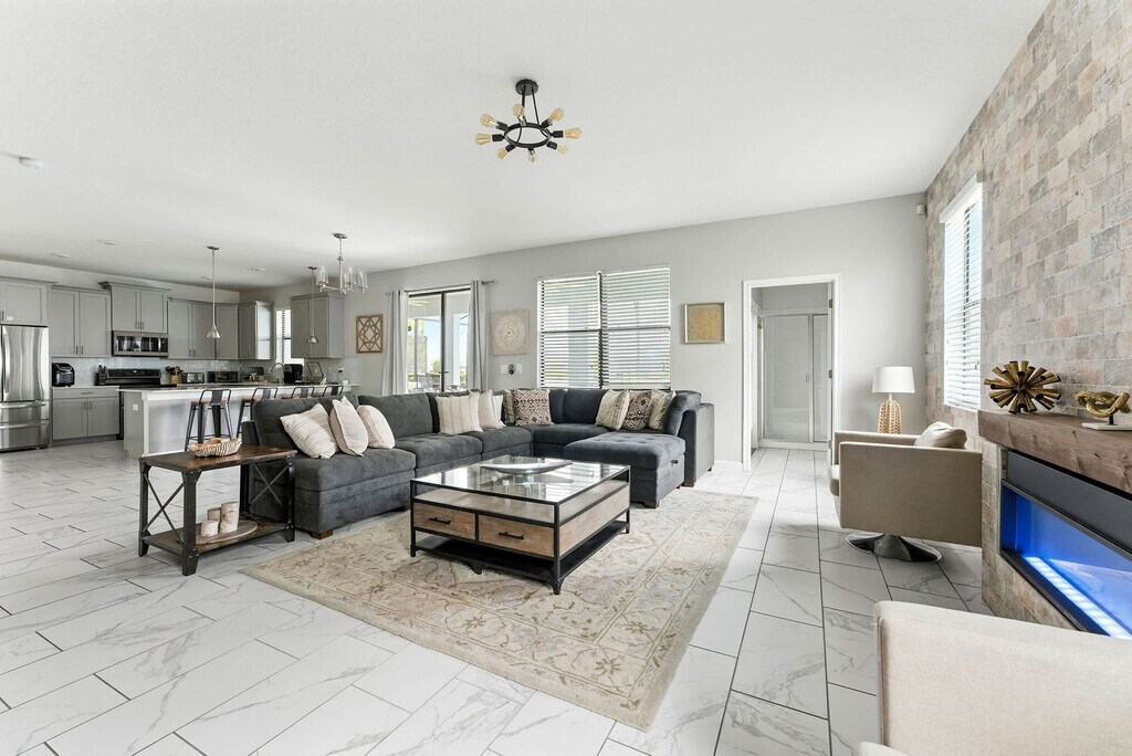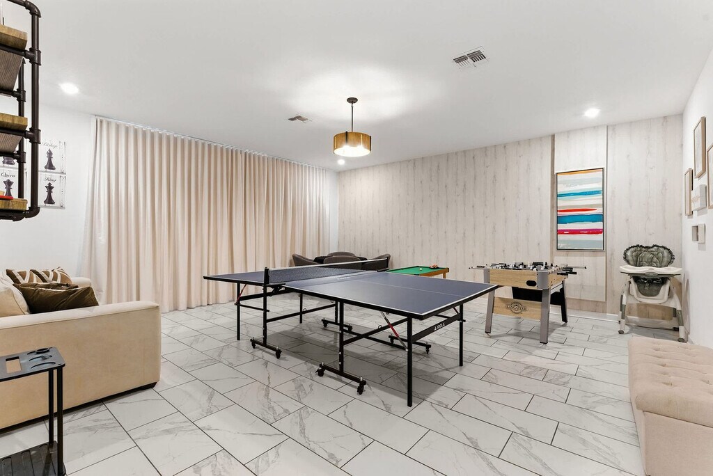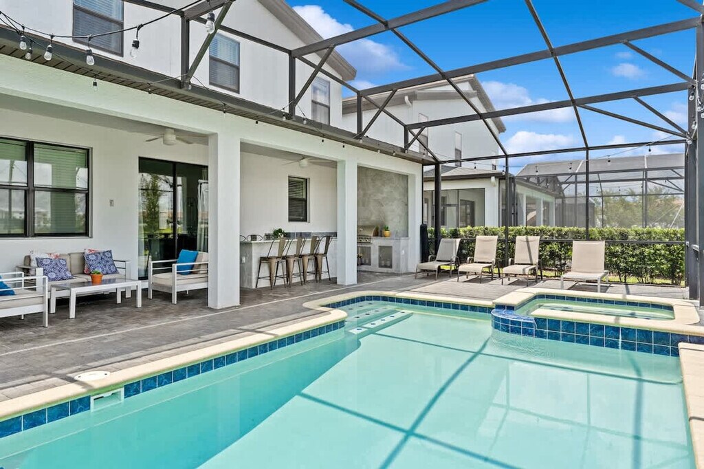 Experience the epitome of luxury in this 6-bedroom, 6-bathroom home located just minutes from Orlando's top attractions. With elegant decor, a spacious living area featuring a fireplace, a gourmet kitchen, a private heatable pool, and a game room equipped with foosball, ping pong, and a pool table, this home is perfect for families and groups seeking comfort, space, and style. Welcome to your dream luxury retreat in Orlando, where every corner of this stunning home has been meticulously designed to deliver refined elegance, modern convenience, and superior comfort. The open-concept living room is both sophisticated and inviting, seamlessly connected to the dining area and chef’s kitchen, making it the perfect setting for relaxation and entertaining. The fully equipped gourmet kitchen boasts stainless steel appliances, an air fryer, a Keurig coffee maker, a wine fridge, and all the cookware and dining essentials needed for memorable meals. Step outside into your private patio oasis, where a heatable pool and stylish lounge chairs invite you to unwind under the Florida sun. Pool heating, BBQ grill, and EV charger are available upon request for an additional fee. Complimentary parking is also provided. Experience the luxurious vacation community of Storey Lake Resort, where magical adventures await just 4 miles away at Disney World. With Universal, Sea World, and other parks just minutes away, you'll have endless entertainment at your fingertips. Spectacular outlet shopping and fine dining options are also within a quick drive from the resort. At Storey Lake, you'll have access to top-notch amenities at "The Hideaway Club," including a fitness center, poolside dining and bar, a resort heated pool and spa, a lazy river, mini golf, water slides, a splash pad, and kayak rentals. Check-in is at 4 PM and check-out is at 10 AM. Early check-in at 10 AM or late check-out at 4 PM is available, subject to availability and additional charges. The property is 100% smoke-free, and any signs of smoking will incur an additional non-refundable fee of $250 USD plus tax. Guests are responsible for replenishing amenities during their stay. Pets are not allowed inside the pool at any time. Quiet hours are between 10 PM and 8 AM. Guests are expected to empty full trash bins and dispose of garbage bags in the appropriate compactor, with an additional fee for excessive trash left in the house or overflowing bins. Includes high-speed Wi-Fi for all your remote work needs. A laptop computer is not included.
