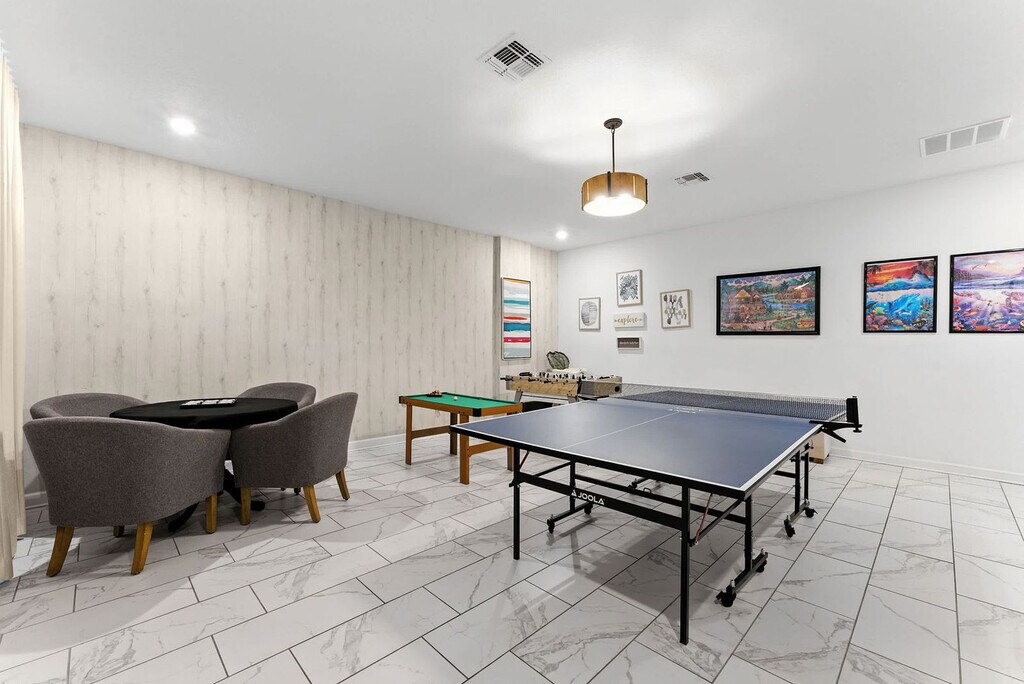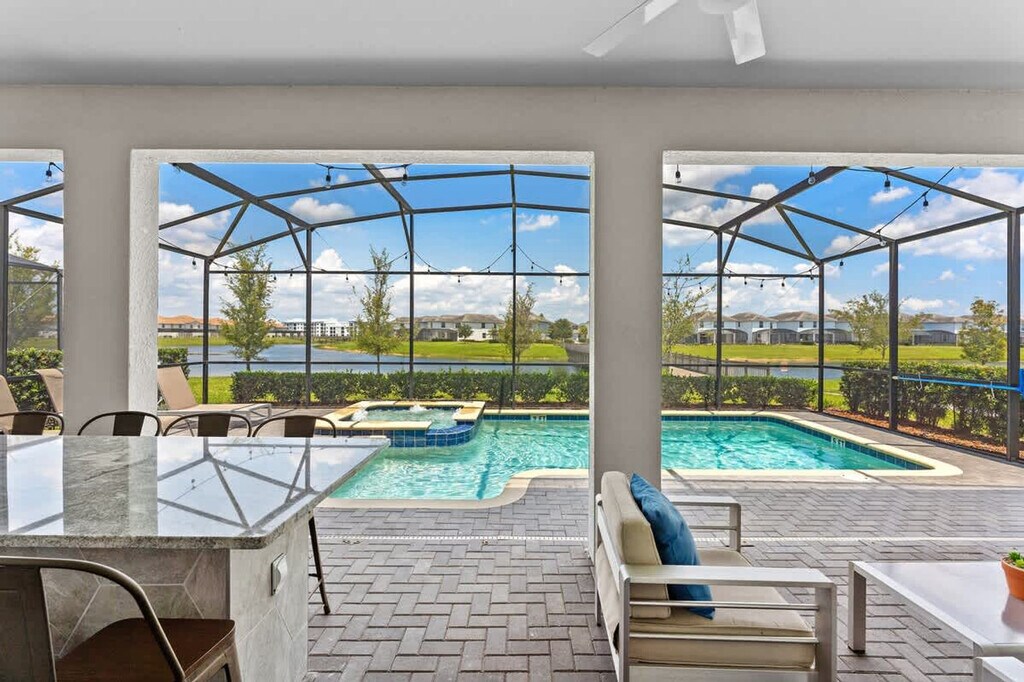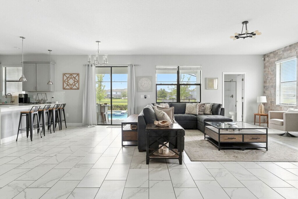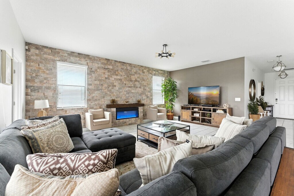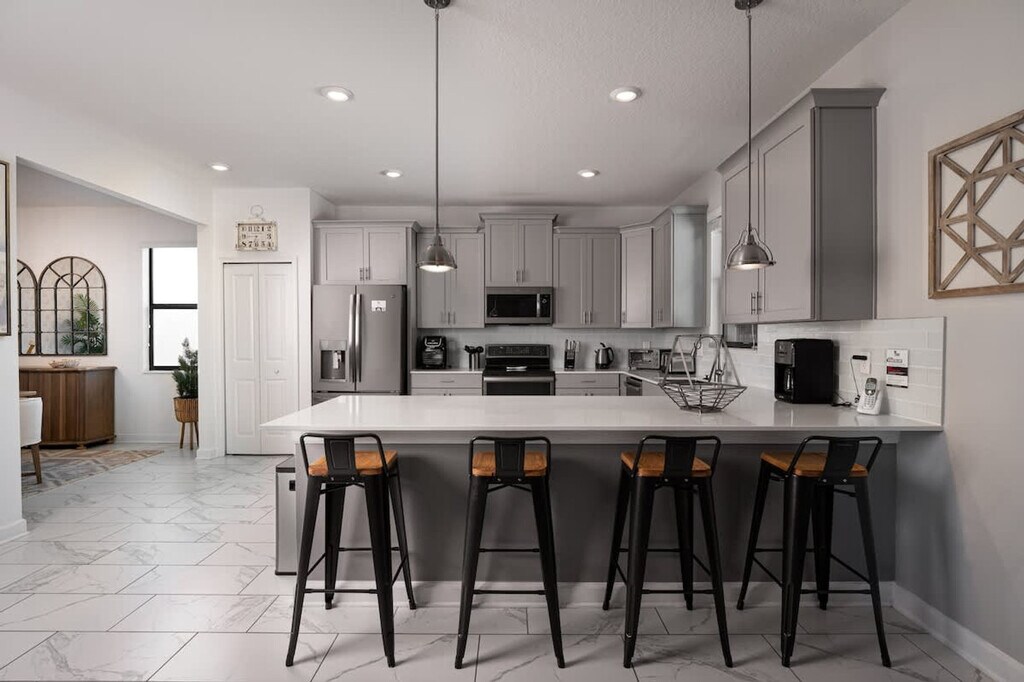 Experience the epitome of luxury in this 6-bedroom, 6-bathroom home located just minutes from Orlando's top attractions. With elegant decor, a spacious living area featuring a fireplace, a gourmet kitchen, a private heatable pool, and a game room equipped with foosball, ping pong, and a pool table, this home is perfect for families and groups seeking comfort, space, and style. Welcome to your dream luxury retreat in Orlando, where every corner of this stunning home has been meticulously designed to deliver refined elegance, modern convenience, and superior comfort. The open-concept living room is both sophisticated and inviting, seamlessly connected to the dining area and chef’s kitchen, making it the perfect setting for relaxation and entertaining. The fully equipped gourmet kitchen boasts stainless steel appliances, an air fryer, a Keurig coffee maker, a wine fridge, and all the cookware and dining essentials needed for memorable meals. Step outside into your private patio oasis, where a heatable pool and stylish lounge chairs invite you to unwind under the Florida sun. Pool heating, BBQ grill, and EV charger are available upon request for an additional fee. Complimentary parking is also provided. Experience the luxurious vacation community of Storey Lake Resort, where magical adventures await just 4 miles away at Disney World. With Universal, Sea World, and other parks just minutes away, you'll have endless entertainment at your fingertips. Spectacular outlet shopping and fine dining options are also within a quick drive from the resort. At Storey Lake, you'll have access to top-notch amenities at "The Hideaway Club," including a fitness center, poolside dining and bar, a resort heated pool and spa, a lazy river, mini golf, water slides, a splash pad, and kayak rentals. Check-in is at 4 PM and check-out is at 10 AM. Early check-in at 10 AM or late check-out at 4 PM is available, subject to availability and additional charges. The property is 100% smoke-free, and any signs of smoking will incur an additional non-refundable fee of $250 USD plus tax. Guests are responsible for replenishing amenities during their stay. Pets are not allowed inside the pool at any time. Quiet hours are between 10 PM and 8 AM. Guests are expected to empty full trash bins and dispose of garbage bags in the appropriate compactor, with an additional fee for excessive trash left in the house or overflowing bins. Includes high-speed Wi-Fi for all your remote work needs. A laptop computer is not included.