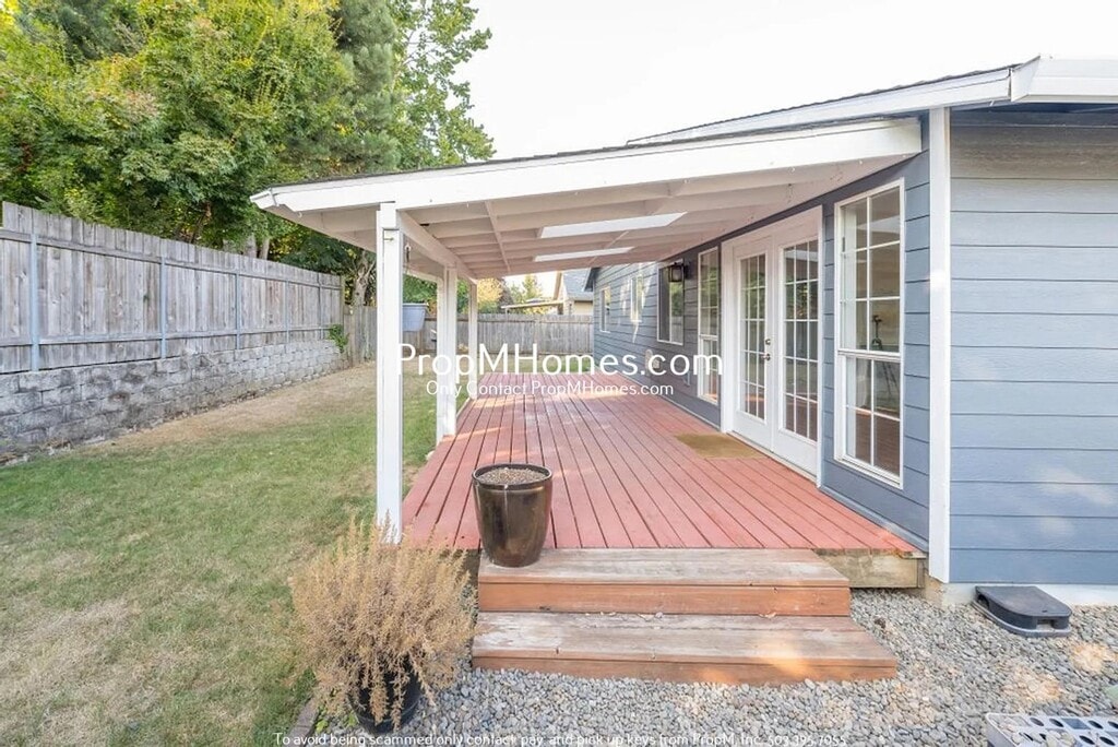 Love Where You Live. Apply Today, Tour Tomorrow. Located in a desirable Wilsonville neighborhood, this beautifully updated single-level home offers comfortable living with convenient access to local parks, shopping, dining, and major commuter routes. Enjoy nearby green spaces, neighborhood trails, and easy access to I-5, making this an ideal location for both relaxation and connectivity. Highlights: -Single-level layout with modern updates throughout -Spacious living room with vaulted ceilings, large front windows, and wood-style flooring -Updated kitchen featuring gray cabinetry, stainless steel appliances, tile backsplash, and ample counter space -Open dining area with French door access to the backyard -Three well-sized bedrooms with plush carpet, ceiling fans, and generous closet space -Primary bedroom features an ensuite bathroom with a walk-in shower -Additional bathroom with a modern vanity and a shower/tub combo -Fully fenced backyard with a covered patio, deck space, and room to garden or relax -Attached two-car garage with additional driveway parking Smart Application Process: -Apply online, fast, secure, and mobile-friendly -One in-person tour per renter due to high demand -Virtual tours available upon request -Boost your approval chances by submitting all documents upfront Utilities & Lease Info: -Included: Landscaping -Tenant Responsible for: Electric, Water/Sewer, Garbage, Gas, and Cable/Internet -Heating: Forced Air -Cooling: N/A -Washer/Dryer: Included -Pets: Two pets allowed (dogs or cats) $40/month pet rent + $500 additional deposit per pet Schools: -Elementary: Wilsonville -Middle: Inza R. Wood -High: Wilsonville Why Renters Love Us: -Open 365 days and Answer our telephone 24 hours a day -Electronic Move Ins, High Tech, Paperless, Mobile App, and more -Moving Discounts: 2 Months Free Storage, $50 off local moves, $200 off out-of-state moves, Call -7 day a week maintenance service -73% of renters who love their maintenance team, stay longer -7 day a week showings, fits your schedule -Improve your credit score with each on-time payment, lowering the interest rate you will pay on loans -88% care about reviews, so we work hard to earn them Ready to schedule a tour or apply? -View our Rental Criteria here: -Questions? Call us. We're here 365 days a year. Disclaimer: All information, regardless of source, is not guaranteed and should be independently verified. Including paint, flooring, square footage, amenities, and more. This home may have an HOA/COA which has additional charges associated with move-in/move-out. Tenant(s) would be responsible for verification of these charges, rules, as well as associated costs. Applications are processed first-come, first-served. All homes have been lived in and are not new. The heating and cooling source needs to be verified by the applicant. Square footage may vary from website to website and must be independently verified. Please confirm the year the home was built so you are aware of the age of the home. A lived-in home will have blemishes, defects, and more. Homes are not required to have A/C. Please verify status before viewing/applying.