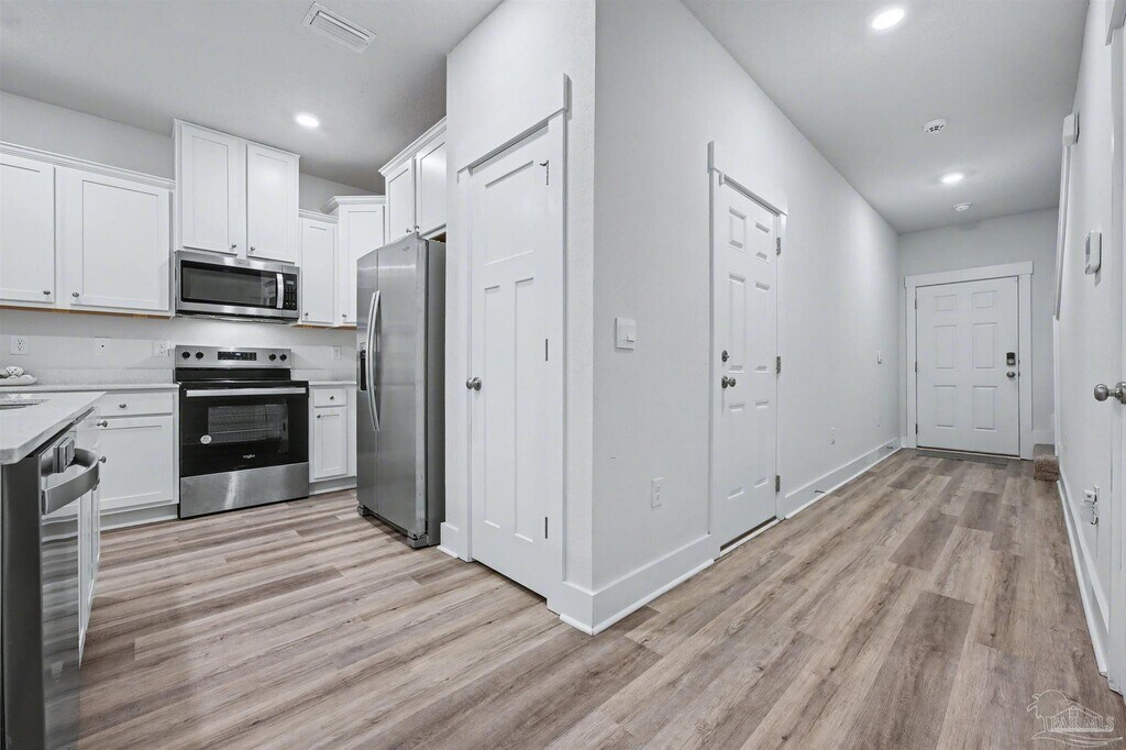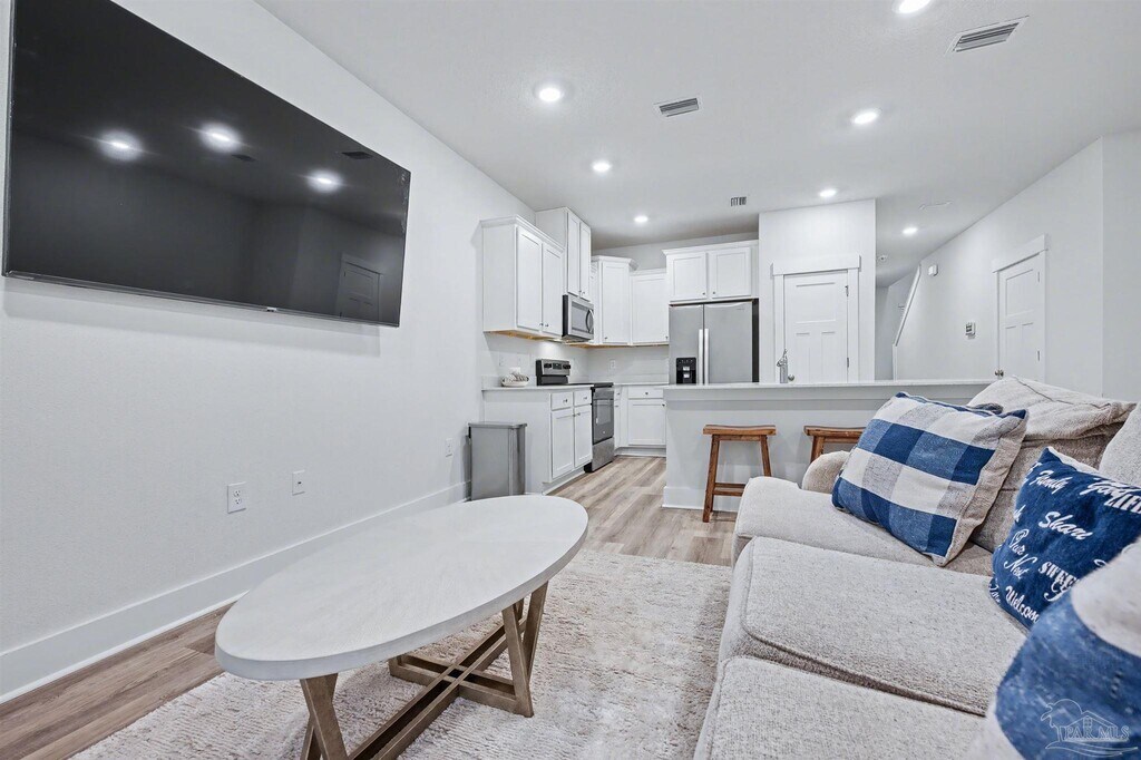 This home is partially furnished FOR RENT OR FOR SALE! It is one of the original builds in Midtown Oaks,completed before the builder transitioned to lower-end finishes,and it stands apart in both quality and detail. Constructed with durable Hardie board siding,the home features quartz countertops,stainless steel appliances,all window blinds,a washer and dryer,and some furnishings,including a large living room TV and some bedroom furniture,making it truly move-in or rent-ready. Designed with the highly desirable Palm floor plan,the open-concept layout seamlessly connects the living,dining,and kitchen areas,creating a welcoming space for everyday living and entertaining. The kitchen offers a spacious breakfast bar,pantry,and modern finishes that balance style and function. Upstairs,the primary suite provides a peaceful retreat with a walk-in closet and a private en-suite bath featuring a double vanity,walk-in shower,and linen closet. Smart Home technology,an alarm system,fabric hurricane window and door protection,and a one-car garage add comfort and peace of mind. The backyard is fenced on two sides,with only a small section needed to create a fully private outdoor space. A rare opportunity in today’s market,this home offers an assumable low-interest loan at approximately 4.5% for qualified buyers. With low HOA fees that include termite protection and a community that allows rentals with no restrictions,the property is ideal for investors or owner-occupants alike. Location is just minutes from the University of West Florida,West Florida Hospital,shopping,dining,the airport,and Pensacola’s beautiful beaches. It also serves as a convenient midway point between NAS Pensacola/Corey Station and Whiting Field and offers easy access to I-10,making commuting simple for military members and professionals alike. Whether you’re a first-time buyer,investor,or someone seeking a low-maintenance prime location,this checks the box.