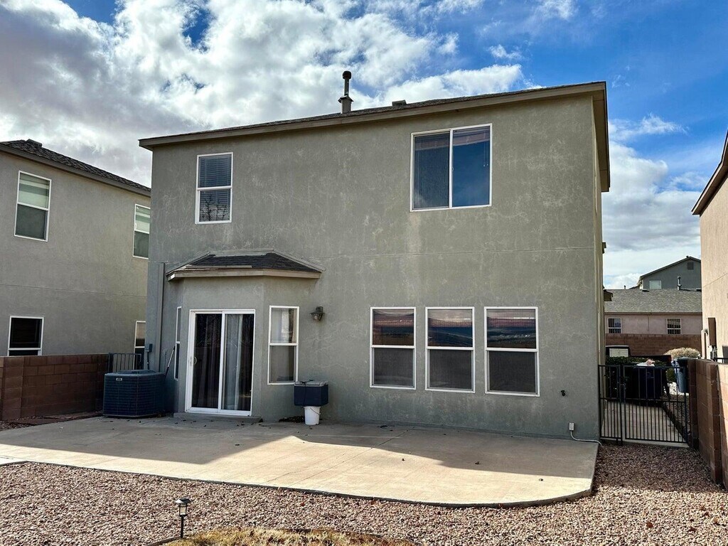 Beautiful and well maintained 2-story home located in the southwest heights! This cozy home has it all,Refrigerated AC,appliances and a spacious backyard. It is in a gated community that is close to schools,shopping,and the interstate. The community even has a swimming pool and parks! If waking up to the beautiful Sandia Mountains is your dream,then this is your dream come true! On the Inside,the living room is large,bright and opens to a sizable eat in kitchen. Upstairs are 3 bedrooms with spacious closets and loads of natural light.