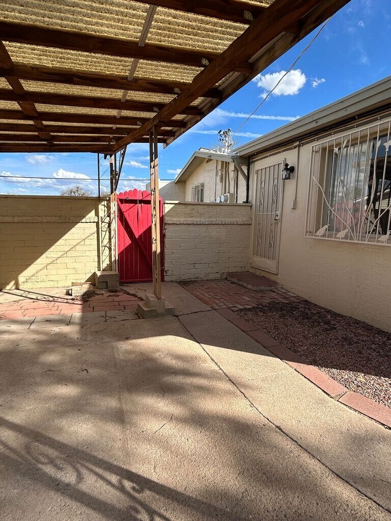 This charming Tucson bungalow is ideally located in a desirable central neighborhood, convenient to the U of A, shopping, dining, and parks. The home features beautiful wood floors, Mexican tile kitchen countertops, and a welcoming arched, covered front patio. The walled front courtyard showcases turquoise gates, saguaro rib accents, and an authentic adobe finish, creating true Southwestern character. A drive-in wooden gate on the north side of the property leads to a private secondary backyard with a clothesline tucked behind the main yard—perfect for an in-city garden, homesteading. A front-yard firepit adds warmth and charm, making the courtyard perfect for entertaining. The main home’s kitchen is equipped with a gas stove, microwave, dishwasher, and refrigerator. Tenant pays all utilities: Electric, Gas, Water, Sewer and Trash To lease/tour contact Maggie at . Equal Housing Opportunity