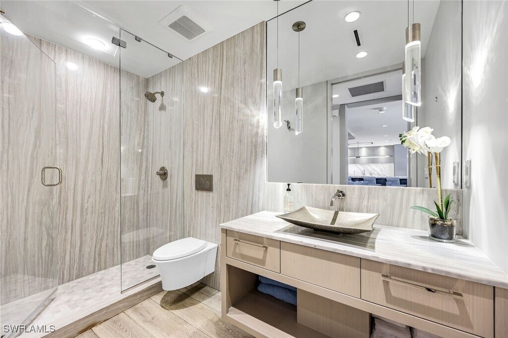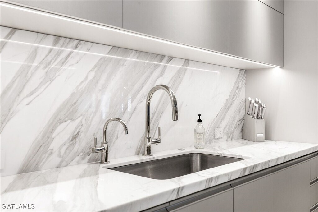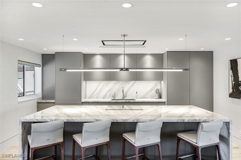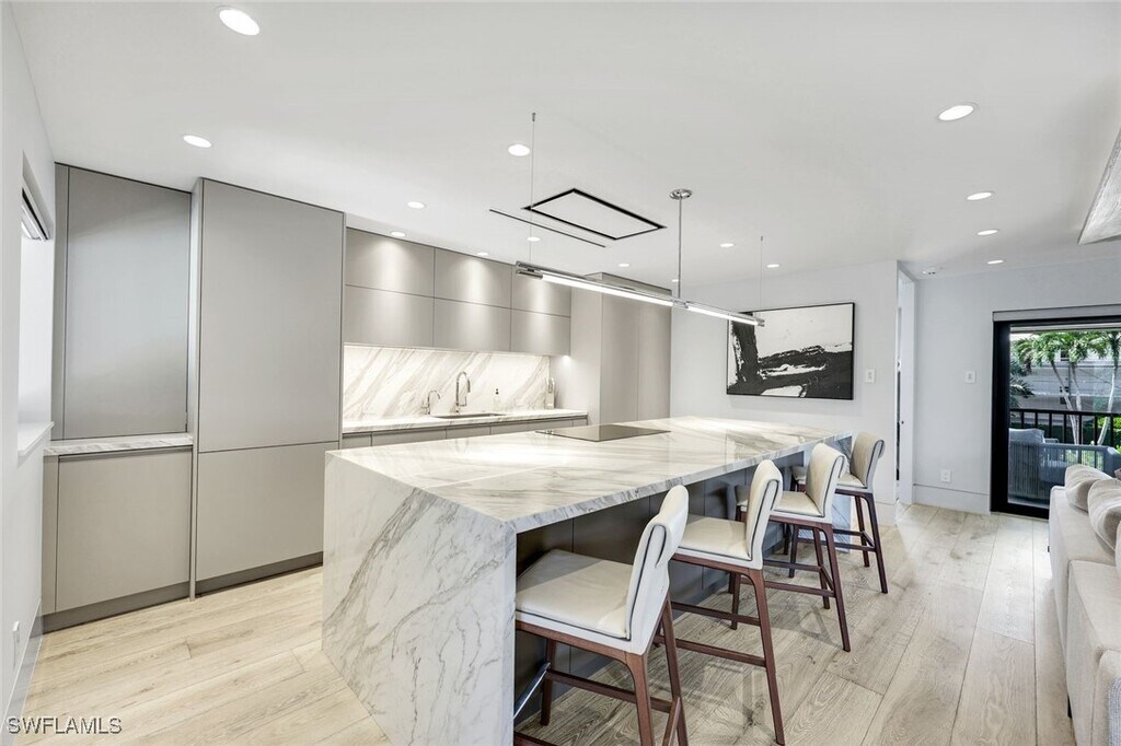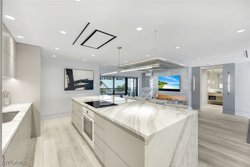 Experience the best of Old Naples at Sun Dial 295 — a stunningly reimagined two-bedroom retreat in one of Naples’ most sought-after locations. This residence blends sophisticated design with coastal elegance,offering the perfect balance of luxury and convenience just steps from world-class beaches,dining,and shopping. Step inside to discover a light-filled open-concept layout,featuring a completely redesigned kitchen with a 10-foot island,Miele appliances,and book-matched quartzite countertops. The remastered baths showcase porcelain-clad walls and custom cabinetry,while Legno Bastone wide-plank wood floors flow seamlessly throughout the home. Every detail reflects meticulous craftsmanship and modern comfort — from automated window treatments and smart privacy glass to a cloud ceiling and custom floor-to-ceiling millwork. The elegant home office is perfect for guests or remote work. Enjoy peace of mind with impact windows and doors,a private garage,plus an additional parking space,and personal storage. Lush landscaping surrounds the property,creating a tranquil,private ambiance amid the vibrancy of 5th Avenue. Ideally positioned at the quiet corner of 5th Avenue South and 3rd Street,this home places you mere footsteps from Naples’ legendary beaches,upscale boutiques,and the vibrant nightlife of Fifth Ave. This isn’t just a residence — it’s a refined lifestyle in the heart of Naples’ most iconic neighborhood.