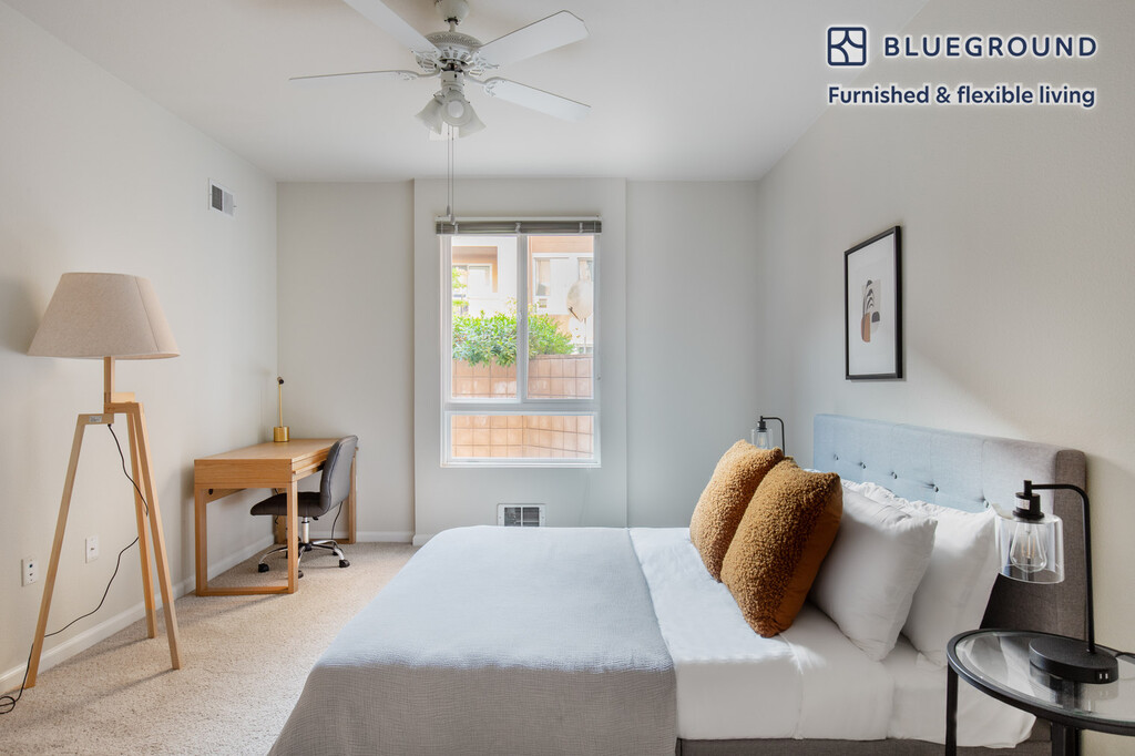 Discover the best of Sunnyvale, with this two bedroom apartment in Heritage District. It’ll be easy to simply show up and start living in this furnished apartment with its fully equipped kitchen, living room, and our dedicated, on-the-ground support. (ID #SFO456) The advertised rate of $4,140/month is the lowest available price, based on a 12 month(s) stay with a move-in date of June 3, 2026. Rates vary depending on the duration of stay, season, and other parameters. For exact pricing and additional pricing components, please visit our website and enter your desired move-in and move-out dates. The rate is applicable when billed upfront; it can be higher if billed in multiple payments. Brokers are welcome to reach out. Were you looking for an unfurnished lease? Try Blueground instead and upgrade from unfurnished to furnished living: - Furnished at rates comparable to unfurnished - No setup or furniture costs - save thousands - Move-in ready - save time, just bring your suitcase Designed with you in mind Thoughtfully designed with bespoke finishes, modern furnishings, and a fully equipped kitchen, you’ll enjoy that “I’m home” feeling with this Blueground apartment. Whether you’re lounging in your sophisticated living room streaming the latest and greatest entertainment on the smart TV or premium wireless speaker, or getting some well-earned rest on the superior quality mattress with fully stocked linens, you’ll fall in love with everything this Heritage District apartment has to offer. This apartment also offers in-apartment laundry. Sleeping arrangements Queen Bed, 63in/160cm Queen Bed, 63in/160cm Amenities Building amenities unique to this two bedroom apartment include an on-site: - Dryer - Elevator - Swimming pool - Washing machine - Parking - Pets allowed Arrival and ongoing support The entire apartment is yours to enjoy! Throughout your stay, you’ll have access to our Client Experience team through the Blueground App. You can schedule additional cleanings, submit maintenance requests, and view our neighborhood recommendations with just a few taps. We’ll share all details upon confirmation of your stay. Other things to note Building amenities may have an extra cost. This Blueground apartment has flexible lease options, allowing you to book it for one month, a year, or more. Pets are welcome, though weight limits and breed restrictions apply and may incur fees. Parking is offered based on availability and is subject to a fee. We take great pride in ensuring every photo displayed is shot in our own units with our actual furnishings. That said, we regularly refresh our decor and furniture arrangement, which may differ from what’s pictured. Also note - This apartment is located near a railway, so expect to hear moderate noise when trains pass [SI]