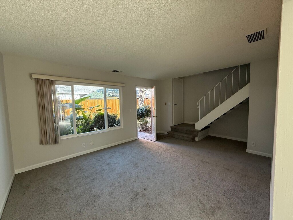 2 bedroom, 1 and 1/2 bathroom unit. New carpet, custom 2 tone paint, laminate flooring in kitchen & 1/2 bath, newer full bathroom upstairs. Washer & dryer hookups inside unit. Fenced patio with extra storage. 1 carport spot available. Please drive by property before requesting showing. Please call/text or email to set up a showing.