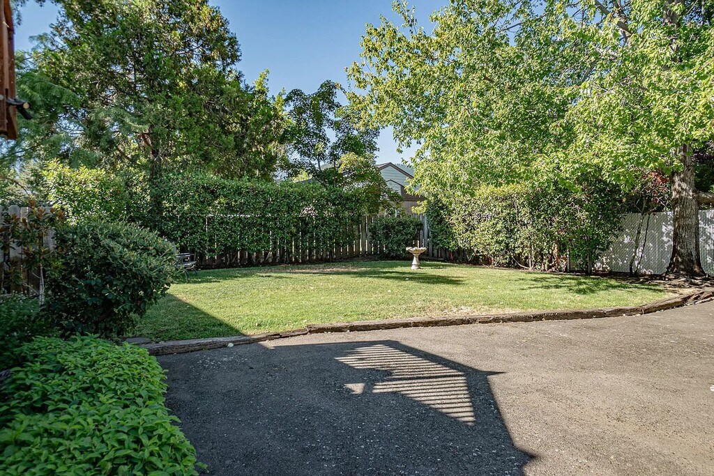 - Small fenced yard with patio