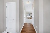 Enjoy this 3 bed, 2.5 bath end unit townhome with a 1 car garage and long driveway. On the main floor, find an open floorplan with bar top between kitchen & dining. Upstairs find an oversized primary suite with sitting area, walk in closet and separate tub. Down the hall find two additional bedrooms and another full bathroom. This home features convenience, simplicity, & privacy with outdoor patio and fence which backs to woods & a trail path to the Neuse River! Pets negotiable. Tenant responsible for landscaping inside of the fence.