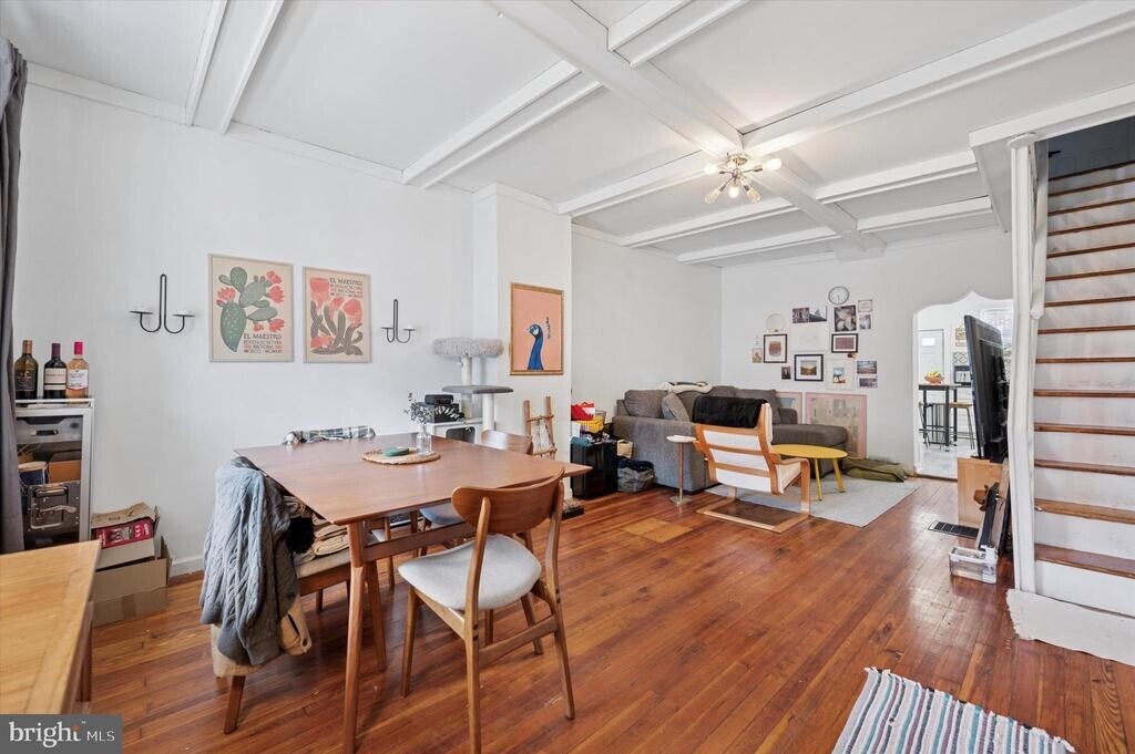 Welcome to 2950 Weikel Street – a charming 3-bedroom, 1-bathroom row home in the heart of Port Richmond. A cozy front porch and bay window greet you as you step inside to a bright, open-concept living and dining area. The space is enhanced by beautiful hardwood floors, custom wainscoting along the staircase, and an eye-catching coffered ceiling that adds character and charm. The eat-in kitchen is tucked away in the rear and features white shaker cabinets, a striking tile backsplash, modern appliances, and plenty of cabinet and counter space. Out back, enjoy a private concrete patio—perfect for relaxing or entertaining during warmer months. Upstairs, you'll find three bedrooms and a full bath. The primary bedroom sits at the front of the home with three windows, generous closet space, and a unique nook area tucked behind the door. The bathroom is finished with tile floors, modern grey accents, and a tub shower. This home also features an unfinished basement with laundry and space for additional storage. Located just steps away from local favorites like Nemi, Tacconelli’s, and more. With access to nearby parks and quick access to I-95, I-676, and public transit options like Route 15 trolley and the Market-Frankford El. First, last and security due at lease signing. Pet(s) decided by landlord. All applicants must apply through NTN. $50 nonrefundable application fee per applicant.