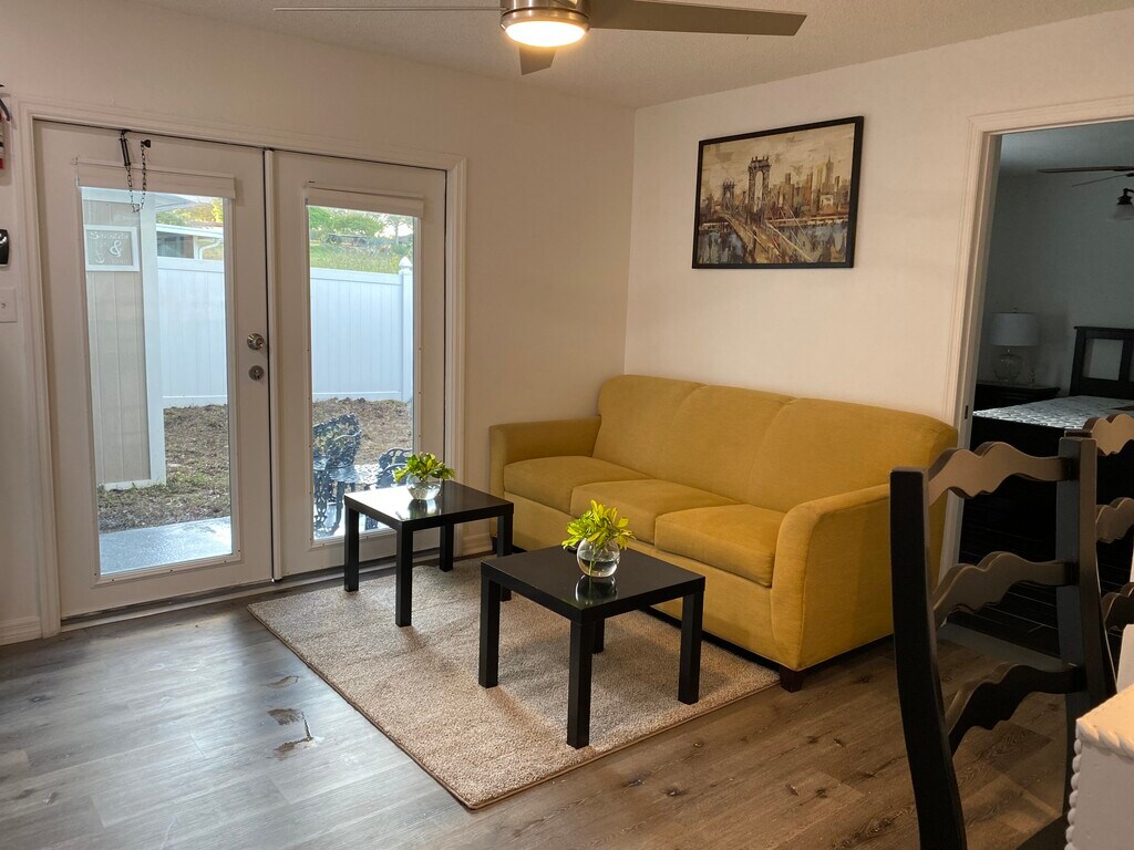 This rental property is $1,350/month and requires a $1,350 deposit and $250 non-refundable furniture use fee. No application fee required. Electric, water, internet service, washer and dryer are included at NO additional cost. Yes, that’s correct, it’s ALL INCLUDED with the $1,350 monthly rental cost. This property is located in beautiful Clermont with a private fenced-in yard and a screened front porch with outdoor seating. This newly renovated, very spacious 1 bedroom and 1 bathroom rental is attached to a beautiful well-kept home with a private fenced key entrance. It’s secure, very well lit, fully furnished and moderately decorated rental. The living room/kitchen is furnished with new 50 inch TV with Roku, full size sleeper sofa, end tables, bar stools, new area rug, new microwave, washer and dryer. The bedroom has a spacious closet and is furnished with a queen size bed with a new mattress. Also, the bedroom includes has dresser, nightstand, seating and lamp. Exterior features include a private gate key entrance, fenced yard and screened front porch with patio seating and table. It’s close to the Turnpike, 192, Disney, shopping, hospitals, community college, south lake bike trail and many surrounding lakes. 6 month-1 year lease term- security deposit, first month’s rent and one-time furniture use fee is due in full for the exchange of keys. No rental application required! Hurry, this rental won’t last for long! Please contact Kendra at or email – for questions or to schedule an appointment to view.