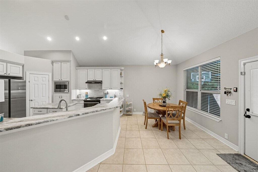 Courtesy of Connect This spacious 5-bedroom, 2.5-bath home (with an extra half bath outdoors) is full of charm and upgrades, offering soaring ceilings, elegant arched accents, an open-concept layout ideal for entertaining, and a beautifully updated kitchen with granite countertops, a new backsplash, and sleek GE appliances, plus a massive private backyard with a covered patio, an easy-start main A/C unit, and a generator plug—an exceptional property with countless details best appreciated in person.