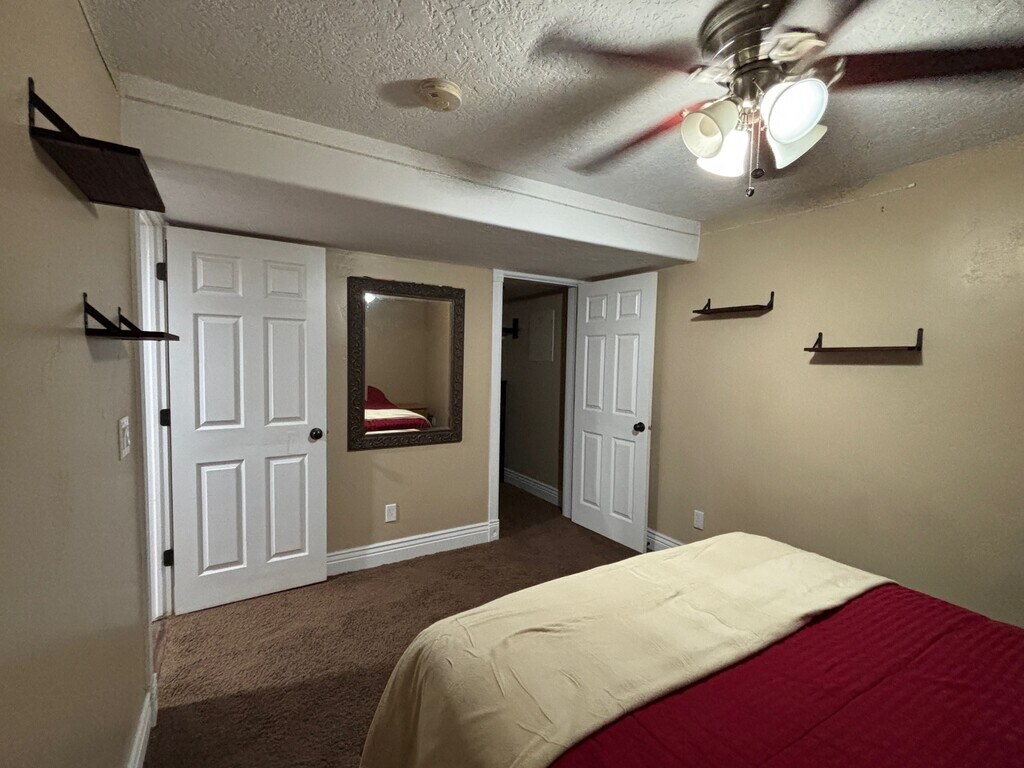 Available Now! This 1 Bed / 1 Bath basement apartment in Eagle Mountain near Hidden Hollow Elementary. Quiet, comfy, close to trails, stores and restraunts. Details: -Washer & Dryer included -Fridge, Oven, Microwave & Dishwasher -Private, separate entrance -Dedicated parking space (perfect for 1 car) -Spacious bathroom -Beautiful views, quiet area & walking paths right outside Furnishings include: - Fully Stocked Kitchen - Dinining room table and chairs -New Queen Bed -2 night stands -dresser -Sectional -55inch TV with soundbar and sub-woofer -Bookshelf Location: -30 min to BYU | 25 min to UVU -5 min to Ridley's Grocery -Minutes from Costco, Smith's, Walmart & Vasa No smoking inside or out.