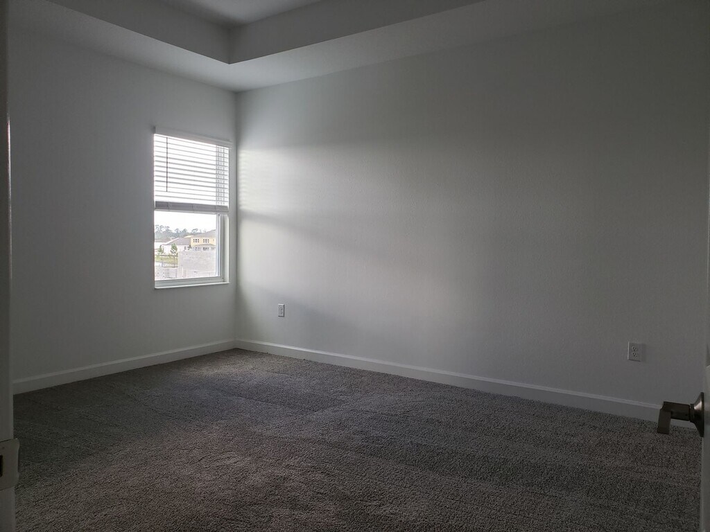 Spacious five-bedroom, three-bathroom home with a two-car garage located on a desirable corner lot with peaceful wooded views in the Bridgewalk community. The open floor plan features tile flooring throughout the main living areas, creating a bright and easy-to-maintain living space. The layout includes a downstairs guest bedroom with a full bathroom just outside the room, ideal for guests or a home office. Unlike many floor plans in the community, this home offers a separate formal living or dining room at the front of the home overlooking the wooded area. The open kitchen features white cabinetry, quartz countertops, stainless steel appliances, a large pantry, and an island with double sinks, along with a convenient built-in desk workspace. The kitchen opens to the spacious family room with views of the oversized covered patio, perfect for relaxing or entertaining. Upstairs, the primary suite includes a tray ceiling, large walk-in closet, and a luxurious bathroom with an oversized walk-in shower, garden tub, dual sinks, and private water closet. The home is equipped with solar panels to help reduce electric costs. Bridgewalk offers resort-style amenities, including a swimming pool, volleyball and basketball courts, tot lot, clubhouse, fitness center, private boat launch, and marina. Conveniently located just south of Lake Nona and minutes from SR 417. Application fee is $65 per adult. Applicants must be able to start a lease within two weeks of approval.
