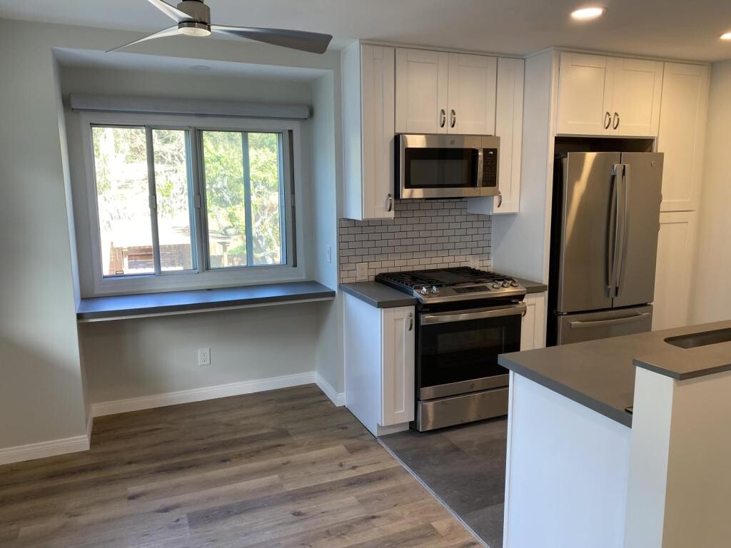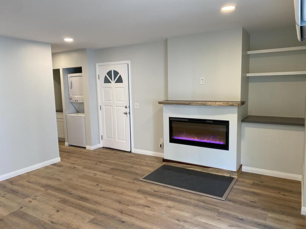 Renovated from top to bottom, 1 bedroom, 1 bath condo with a 1 car garage. New bathroom, custom kitchen with top of the line stainless steel appliances. beautifully appointed fireplace in the living room. All hard surface floors and custom closet in the bedroom. In unit washer and dryer for your convivence. Big balcony with partial view to the water. All this in the safety of a gated community. Come check it out today. 12 months lease, 1 month security deposit plus pet deposit if you have a pet. Must have good credit and make at least 2.5 times the rent in income.