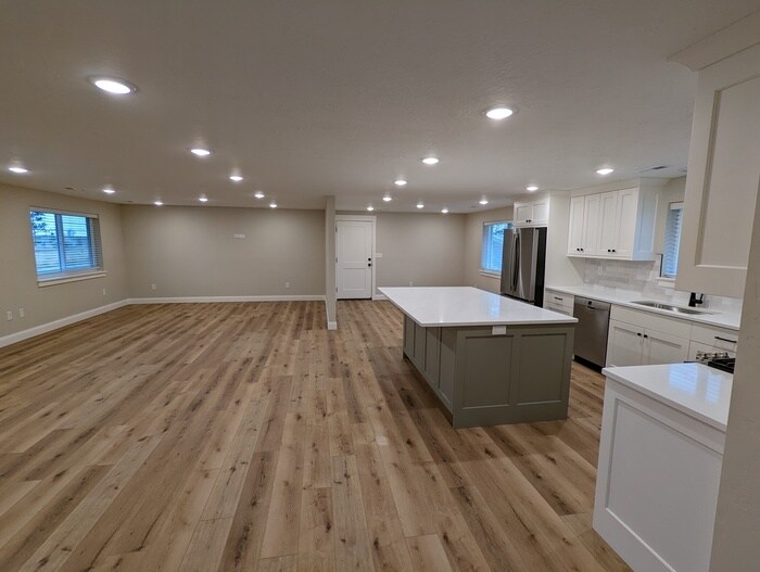 This is a very large ranch/rambler style home with both an upstairs and downstairs rental unit. This listing is for the 1700 SF 3 bedroom 2 bathroom Upstairs unit. This is property has the option for onsite stables with electricity and water for horse boarding/paddock and trailer storage. Horse boarding is not included in the rental price. Call Steve to discuss Home is also located 2 minutes away from the Syracuse Equestrian Park. Totally renovated home on with large yard in quiet area near Jensen Park!!! Open-concept dining, kitchen and living area. New kitchen cabinets with soft close doors and drawers, quartz countertops in kitchen and bathrooms, new fridge, new gas range, new microwave, new dishwasher, new wood flooring throughout, new tile in all bathrooms, new vanities in all bathrooms, new carpet in all bedrooms, new trim and doors throughout, new paint on the exterior of the home, new energy efficient windows, new energy efficient lighting throughout, large closets in all bedrooms with built-in shelving, multiple storage closets throughout the home, finished laundry area, new high-efficiency air conditioning and furnace, central air, one car garage with garage door opener, fenced yard. Home has three entrances, one from garage, the back deck, and the front door. Single car garage is included and is totally separated by a dividing wall to allow for privacy/security. Large outdoor parking area in addition to garage. Heating and air conditioning are on separate thermostats from the upstairs unit to allow for personal temperature preferences on both levels of the home. Contact us to schedule a showing.