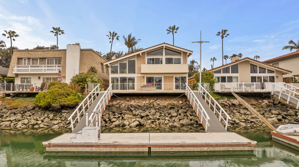 Welcome to this serene Ventura Keys home, a perfect retreat for coastal living in the sought-after Ventura Keys neighborhood. This inviting residence features 5 bedrooms, 3 bathrooms, and a 3-car garage. Large windows fill the space with soft natural light and offer tranquil views of the waterways. The primary suite is a peaceful haven with direct outdoor access, while the four additional bedrooms provide flexibility for guests, an office, or hobbies. The backyard includes a quiet patio and a private boat dock, ideal for boating or relaxing by the water with stunning views. Inside, enjoy a cozy fireplace, recessed lighting, hardwood floors, and a 40ft boat dock. Located in Ventura Keys, you're steps from the beach, shops, dining, and amenities.