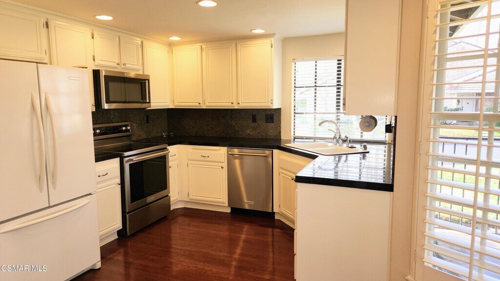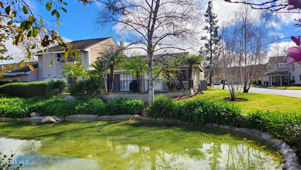 Beautifully and thoughtfully updated single-story, 3-bedroom, 2-bathroom townhome located in the picturesque Stoneybrook community. Situated along the tranquil brook in a meticulously landscaped setting, this home offers a serene and private atmosphere while being centrally located in the heart of Westlake Village. Just minutes from shopping, dining, theaters, golf courses, and the lake, this location is second to none. The home has been freshly painted and features new carpet throughout, enhancing its bright and inviting interior. The gourmet kitchen is a chef's dream, complete with high-end KitchenAid appliances, sleek countertops, and a movable center island, offering both functionality and style. Both bathrooms have been thoughtfully updated with modern fixtures and finishes. Sliding doors in the living room and French doors in the kitchen open to a peaceful, landscaped patio, providing a seamless indoor-outdoor living experience with views of the serene brook and pool. A central atrium brings in an abundance of natural light, creating a warm and welcoming atmosphere throughout the home. The spacious primary suite features vaulted ceilings, a large walk-in closet, and a peaceful retreat-like ambiance. The Stoneybrook community offers lush greenbelts, a serene brook with fountains and waterfalls, and well-maintained walking paths, creating the perfect environment for peaceful strolls and relaxation.