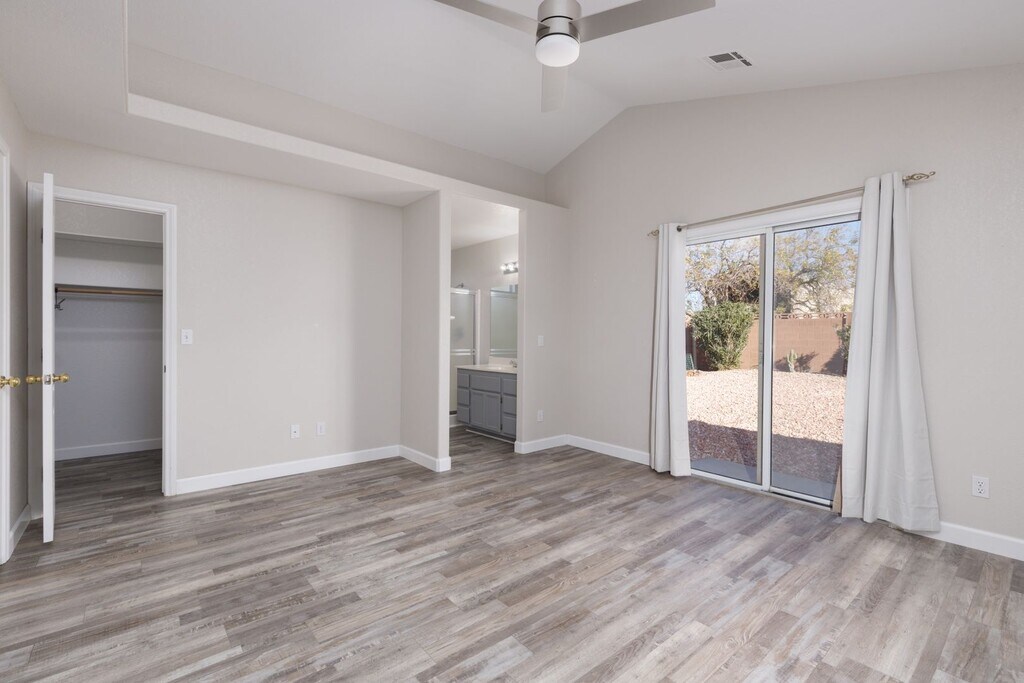 Welcome to this charming 3-bedroom, 2-bathroom home located in the desirable neighborhood of Mesquite, NV. This well-maintained house offers a range of amenities that will surely meet your needs. As you step inside, you'll appreciate the spaciousness and natural light that fills the living areas with vinyl planking flooring throughout the home. The fenced backyard provides a secure space for outdoor activities and privacy. With a 2-car garage, you'll have plenty of room for parking and storage. The absence of an HOA means you have the freedom to personalize your space without any restrictions. The convenience of having a washer and dryer within the home ensures that laundry day is a breeze. Additionally, the water softener system will provide you with the luxury of soft water throughout the house. Need extra storage? No problem! This property also includes a small shed for extra storage needs. Located in a sought-after neighborhood, this home offers a peaceful and welcoming environment. Don't miss out on the opportunity to make this house your home. Contact us today to schedule a viewing and experience the comfort and convenience this property has to offer.