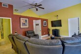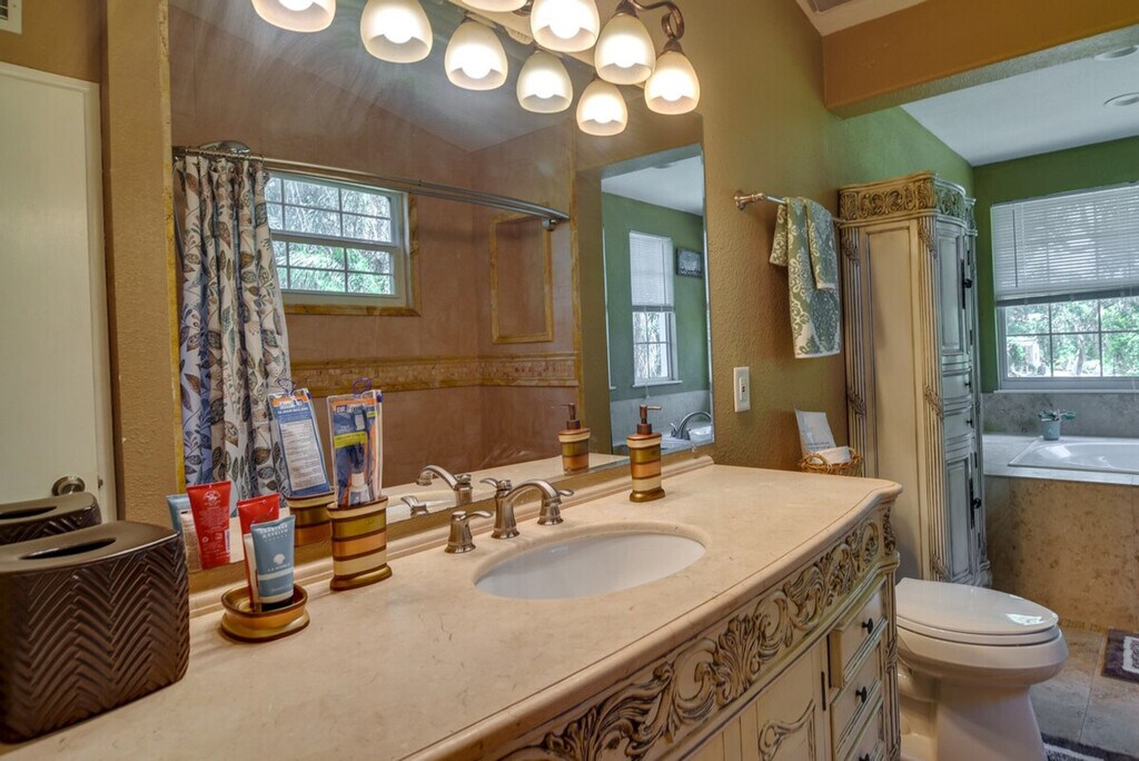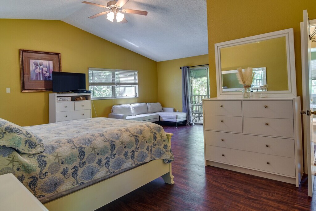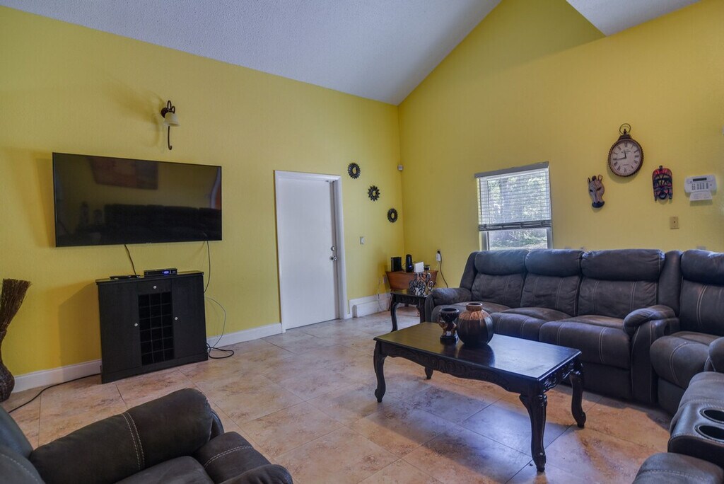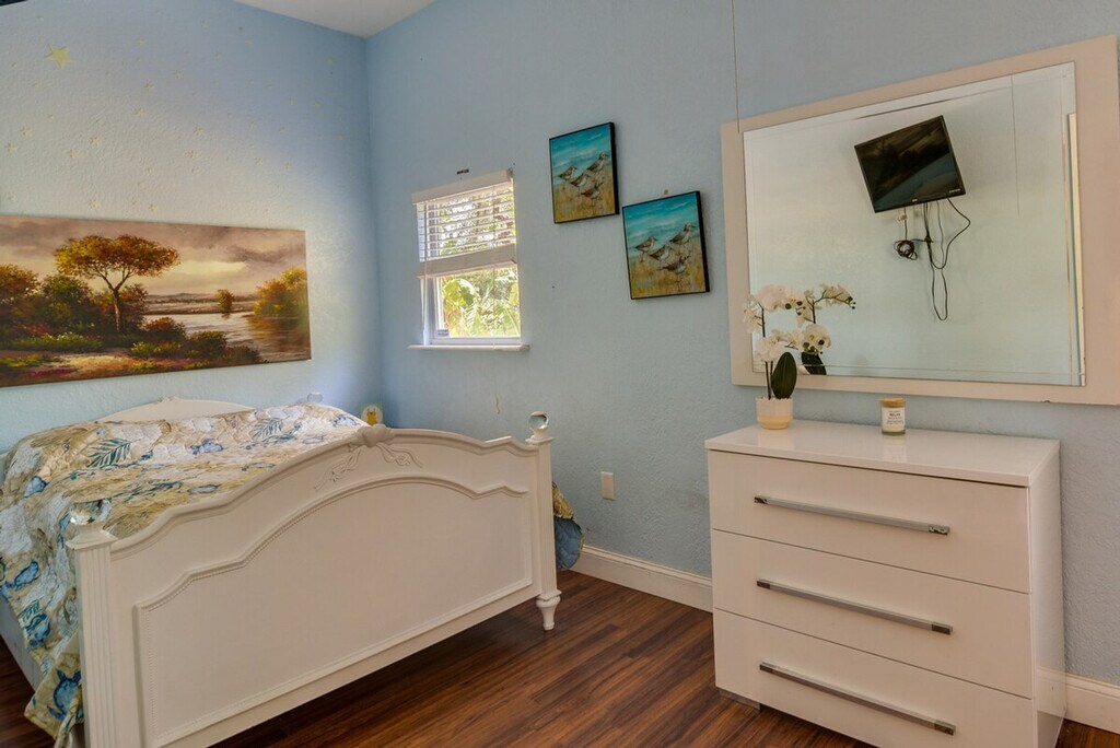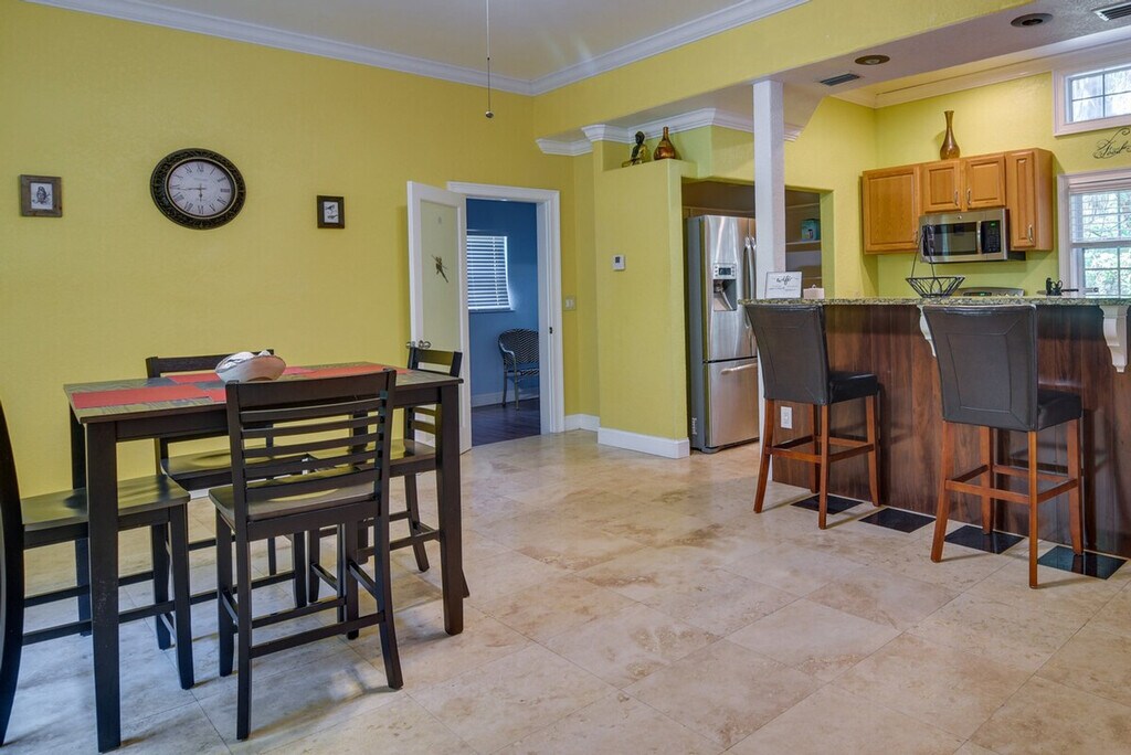 Feel at home in this pet-friendly 2-bedroom, 2-bathroom vacation rental in St. Petersburg, nestled among towering oak trees. This tropical bungalow is the Sunshine State getaway you've been searching for. This apartment features 3 Smart TVs, a dining table, a soaker tub, a baby bath, and ceiling fans. The kitchen is equipped with a dishwasher, refrigerator, stove/oven, microwave, drip coffee maker, Keurig coffee maker, and toaster. You'll also have access to free Wi-Fi, complimentary toiletries, towels and linens, a washer and dryer, an iron and board, and central heating and A/C. Enjoy the yard, outdoor seating, an outdoor dining set, and a charcoal grill. A pet fee of $25 applies, with a maximum of 2 pets allowed. Conveniently located near the heart of downtown St. Petersburg, shopping and dining on the St. Pete Pier, and the famous white-sand shore of St. Pete Beach, you'll never run out of adventures to embark on during your visit. The property requires 2 small steps to enter. Events, parties, or large gatherings are not allowed. Guests must be at least 25 years old to book. [SI]
