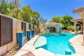 CUSTOM ESTATE HOME IN PRESTIGIOUS GUARD-GATED WILLOW CREEK COMMUNITY*LOCATED BEHIND A SECONDARY GATE, WITH ROVING SECURITY, THIS HOME PROVIDES IDEAL SECURITY & PRIVACY*COMMUNITY FEATURES TENNIS, PICKLEBALL AND WALKING/JOGGING TRAILS WITH ACCESS TO DOWNTOWN SUMMERLIN*1/3 ACRE CORNER LOT, WITH NO NEIGHBORS BEHIND*PRIVATE RESORT-STYLE BACKYARD FEATURES A SPARKLING POOL WITH WATERFALL, GROTTO WITH SPA, SWIM-UP BAR & WATER SLIDE, SUNKEN OUTDOOR KITCHEN WITH BUILT-IN BBQ, FIREPIT, COVERED PATIO & 2 GREEN HOUSES*HOME FEATURES CUSTOM UPGRADES & HIGH-END FINISHES THROUGHOUT*GOURMET KITCHEN WITH VIKING & SUB-ZERO APPLIANCES, QUARTZ COUNTERS, CUSTOM CABINETS & A WALK-IN PANTRY*FAMILY ROOM FEATURES A TWO-WAY FIREPLACE & A LIGHTED ONYX ENTERTAINMENT CENTER & BAR*FLOORPLAN OFFERS TWO PRIMARY SUITES PLUS A NEXT-GEN SUITE WITH KITCHENETTE & STEAM SHOWER*OVERSIZED GARAGES & EXTENDED DRIVEWAY*POOL SERVICE INCLUDED*LOCATED NEAR LAS VEGAS BALLPARK, GOLDEN KNIGHTS PRACTICE ARENA & RED ROCK RECREATION AREA*
