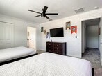 Experience the excitement of the new Epic Universe park this May 22nd by booking your stay in this charming townhouse, offering unbeatable comfort just minutes away. This property features four bedrooms, a private pool, and a fully equipped kitchen, ensuring a delightful stay. Enjoy the convenience of self check-in, free parking, and complimentary access to resort amenities, including two luxury clubhouses. This spacious townhouse is fully equipped with essentials for a comfortable stay. It includes air conditioning, free Wi-Fi, cable TV, and patio furniture. The private pool can be heated for an additional fee. The kitchen is fully equipped, and there's a laundry room with a washer, dryer, and ironing supplies. Enjoy entertainment with a game console and relax in the living room with a smart TV and sofa bed. Guests can enjoy free parking on the premises and full complimentary access to all resort amenities, including a water park, gym, spa center, heated swimming pools, lazy river, beach volleyball field, basketball, and a social grill/BBQ area. Additional fees apply for pool heating, mini-golf, and lagoon kayaking. Optional services like pack and play, high chair, early check-in, and late check-out are available for an extra cost. Located near Disney and popular outlets, this property offers easy access to major attractions. Disney World is just 5 miles away, and Universal Studios is 12 miles away. The Orlando International Airport is 21.1 miles from the property. For shopping, The Loop Shopping Center is 3.3 miles away, and Vineland Premium Outlets are 7.5 miles away. Public transportation options include the SunRail Station, 5.2 miles away, with Uber and Lyft available. Guests must be at least 18 years old to book a reservation. No unregistered guests, smoking, drugs, or pets are allowed inside the home. The property is exclusively for vacation use, and filming or using it as a warehouse is not permitted without prior authorization. To access the resort, guests must share a guest list to create and share QR codes. Essentials are provided for the first night only, and guests are expected to maintain cleanliness throughout their stay. A security deposit of $300 is required and is fully refundable if no damages or cleaning issues are found after check-out. The property offers free Wi-Fi, making it suitable for remote work-friendly stays. A laptop computer is not included.