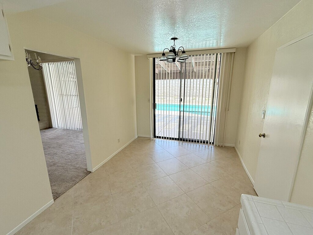 This delightful pool home is located in the highly sought-after Los Compadres neighborhood of Palm Springs, offering easy access to grocery stores, restaurants, and local entertainment. The home features 3 comfortable bedrooms and 2 bathrooms, along with a spacious kitchen that includes a cozy breakfast nook, perfect for casual meals. A separate laundry room with washer/dryer hookups adds convenience and extra storage space. The generously sized bedrooms are complemented by an open-concept living and dining area, where floor-to-ceiling windows fill the space with beautiful natural light, creating a warm and welcoming atmosphere. Step outside into your private backyard oasis, complete with a sparkling pool, stunning mountain views, and a covered patio ideal for relaxing or entertaining guests. As a bonus, residents of Los Compadres have access to a park-like setting and nearby tennis courts. Freshly updated and equipped with a brand-new HVAC system, this home is move-in ready and designed for year-round comfort. **All information, including availability and photos are subject to change without notice** ** Renter's insurance required ** **This is a NON-SMOKING property** **A small pet may be allowed upon owner's approval and with additional deposit**