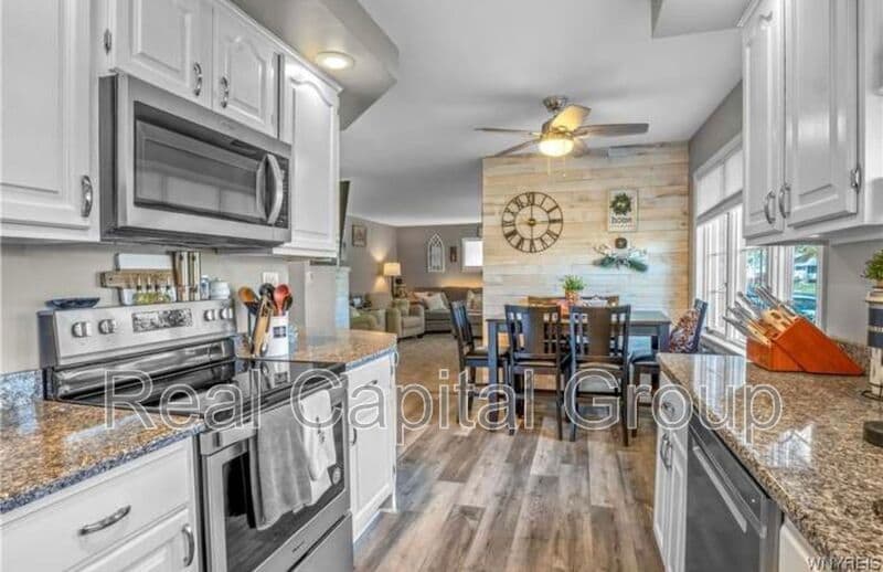 Welcome to this stunning 3-bedroom, 2-bathroom home located in the scenic Niagara Falls, NY. This property boasts a range of high-end amenities that are sure to impress. The kitchen is a chef's dream, featuring sleek granite countertops that add a touch of elegance. The finished basement provides additional living space, perfect for a variety of uses. The sunroom is a delightful space to enjoy natural light all year round, while the formal living room is ideal for hosting guests. The cathedral ceilings enhance the spacious feel of the home, and the skylights flood the space with warmth and light. The 2.5 car garage offers ample storage and parking space. This home seamlessly blends functionality and style, making it a must-see property. Amenities: granite countertops, finished basement, sunroom, formal living room, cathedral ceilings, skylights, 2.5 car garage