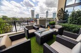 Saltwater pool with sunbathing ledge on spacious terrace level featuring exquisite skyline views. Outdoor amenity deck with cabanas,fire pit,fireplace,grilling stations,plentiful seating and lush landscaping. Spacious two-story lobby with fireplace. 24/7 concierge staff available to assist residents,provide area information,receiving packages and dry-cleaning. Climate controlled personal storage. Large kitchen islands with waterfall quartz. Floor to ceiling windows. Beverage center with wine shelving.