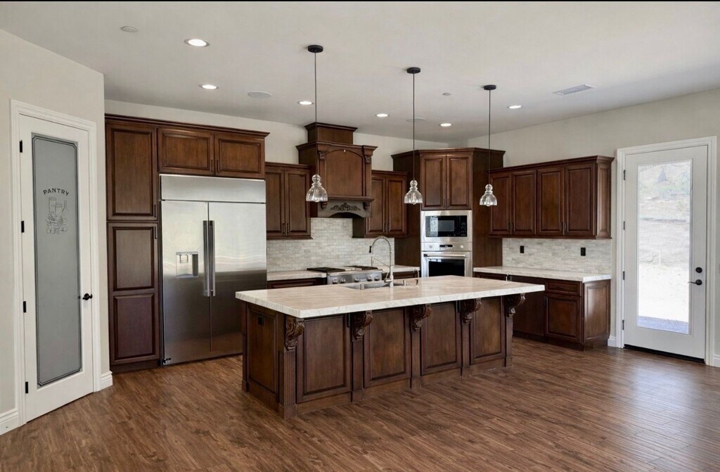 Beautiful and spacious newer family home featuring a bright, open floor plan with 4 bedrooms, 4.5 bathrooms, and a bonus/office room. This home offers a large living room with a cozy wood-burning fireplace, a formal dining area, and a stunning upgraded kitchen designed for both function and style. The expansive kitchen features granite countertops, a large island with bar seating, custom walnut cabinetry, and a walk-in pantry. High-end stainless-steel Monogram appliances are included, featuring a built-in side-by-side refrigerator, fresh-food mini fridge, professional range, warming drawer, microwave, and dishwasher — perfect for everyday living and entertaining. Other quality features include: Tile flooring throughout, fresh two-tone paint, ceiling fans and a full bathroom in each bedroom, updated fixtures, built-in stereo speakers, and security system with cameras. The spacious master suite offers an oversized walk-in closet for ample storage. Outdoor features are just as impressive with a 3-car garage with epoxy flooring, RV/boat parking, a large covered front patio ideal for entertaining, fenced side yard, huge front yard, and professionally landscaped grounds throughout. Owner provides gardener service. Tenant is responsible for all utilities and propane. Pet-friendly with owner approval. Conveniently located near great schools, shopping, dining, and parks. Best of all, this home includes solar to help reduce monthly energy costs. Please drive by the property first to ensure the location meets your needs, then call to schedule a showing. *** Will be ready to MOVE-IN on March 6th *** Please Visit Our Website at