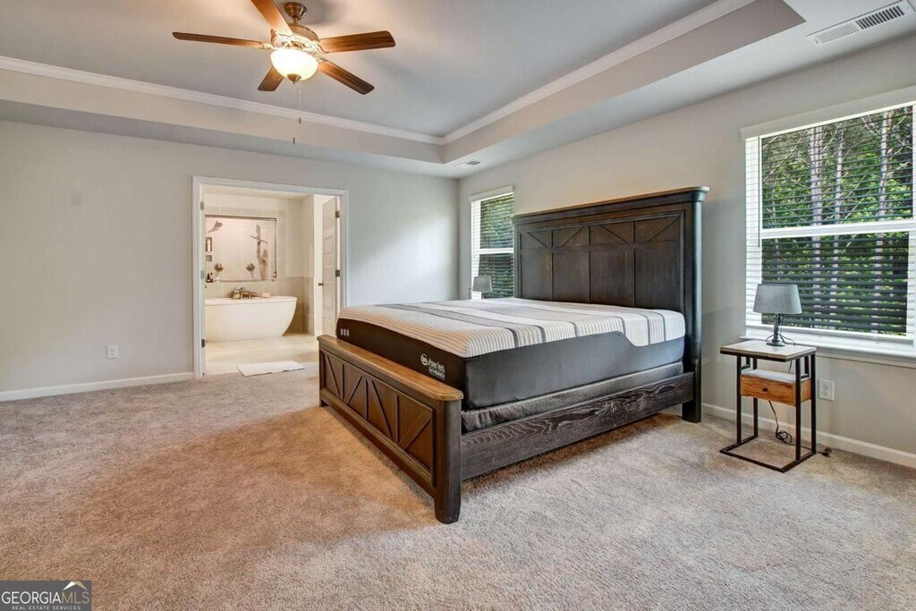 Lease-Purchase Opportunity! Welcome to Your Dream Home - Grab the model home of Trinity Park on a basement for less! Like New, Completed January 2025 with the option to Assume as a Veteran at 5.62% located in Trinity Park of McDonough, GA. Step into modern comfort with this expansive Clarity Plan of over 4000 square feet, 5-bedroom, 4-bathroom home nestled on a private wooded lot. Designed for everyday living and effortless entertaining, the main level offers a full bedroom and bathroom, a formal dining room a cozy living room, and an inviting family room that opens to a gourmet kitchen with direct access to the deck - perfect for morning coffee or weekend barbecues. Upstairs, enjoy a versatile loft space, a convenient laundry room, two bedrooms with a Jack and Jill bathroom, another bedroom with its own private bath, and an impressive owner's suite featuring a sitting area, huge walk-in closet, his and hers vanities, soaking tub, and a luxurious oversized shower. Additional highlights include a covered front porch, full unfinished basement with endless potential, and a 3-car garage. With construction completed in January 2025, this like-new home offers modern finishes and thoughtful design throughout. Don't miss the chance to make this wooded retreat your home! This home is the same plan as the model home on a full unfinished basement. Some photos are virtually staged