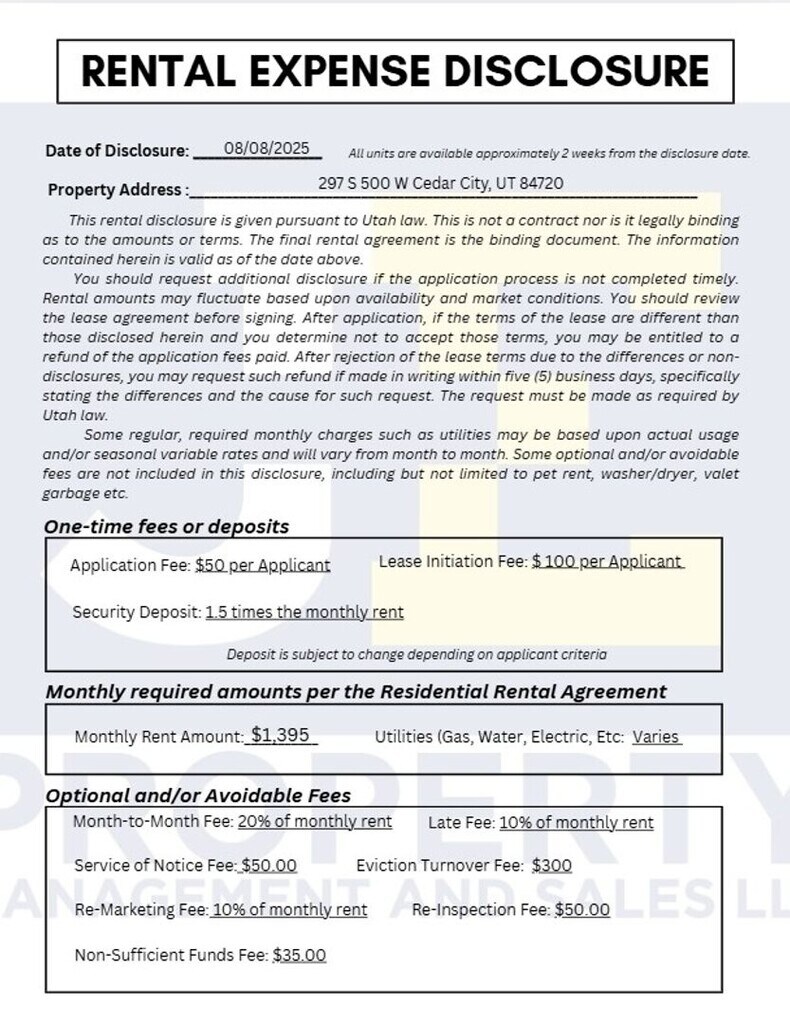 The rental at 297 S 500 W is currently listed at $1,395.