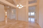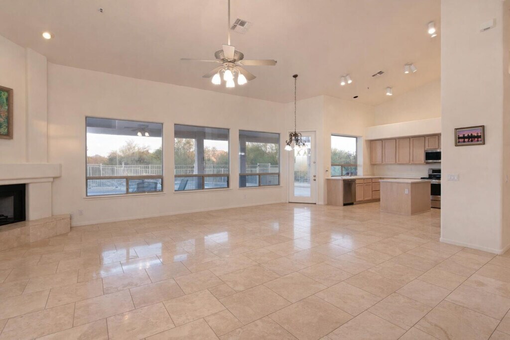 Meticulously maintained this 3 bedroom/2.5 bath with Den home. Soaring ceilings,travertine floors and an open floor plan greet you when you enter this single level home. Oversized 1/2 acre,premium cul de sac view lot. Natural desert landscape & Lone Mountain unobstructed views can be observed from several areas of the home including the back yard. Travertine flooring in all the main living areas,formal living and dining rooms. Kitchen features new stainless appliances,island and cozy breakfast nook perfectly positioned to enjoy endless desert and mountain views. Open concept kitchen & family room with fireplace,covered patio and fenced pool make this home perfect for entertaining.