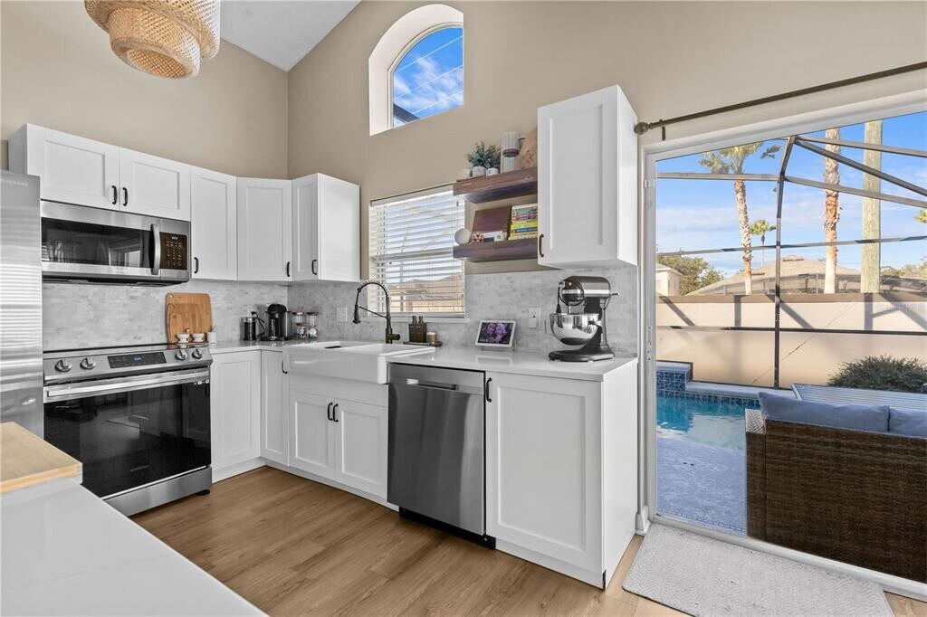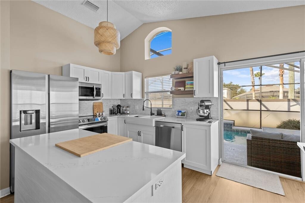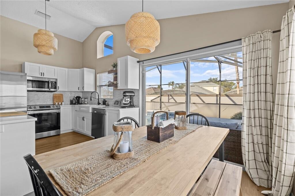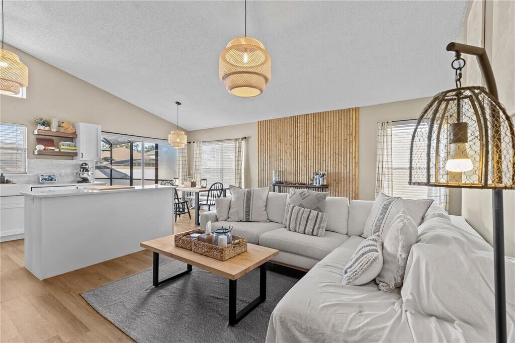 This single-family home is available for rent in the gated community of Southern Dunes! Featuring 3 bedrooms,a private pool,and numerous updates,this property is perfect for comfortable living. The kitchen has been renovated with quartz countertops and stainless steel appliances. It opens directly to the living room and dining nook,creating a spacious,open floor plan. The private pool,enclosed by a screen and equipped with a pool heater,allows for year-round enjoyment. Inside,the home boasts LVP flooring throughout,fresh paint,and both bathrooms have been beautifully renovated in a sleek,modern style. The attached one-car garage includes a Tesla EV charger,and the driveway has been extended to accommodate guests. Pool care and lawn care are both included in the monthly rent for added convenience. The Southern Dunes community has a community pool,a playground,and tennis courts. The Southern Dunes Golf and Country Club is also located in the community. Located just off Highway 27,the community is close to numerous shops and restaurants. Schedule a tour today and see this fantastic home for yourself! MLS# O6392324