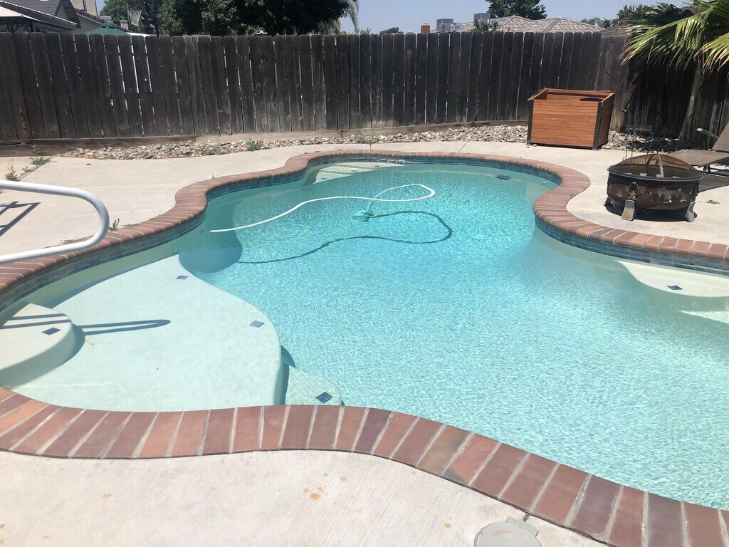 North Hanford home in a very desirable neighborhood. Open-concept layout with a fridge and washer/dryer included for use! 3 Bedrooms, 2 Bathrooms. One of the bedrooms does not have a closet and has see-through glass doors, more like an office. The pool sets this home apart from others! Pool service is included.