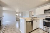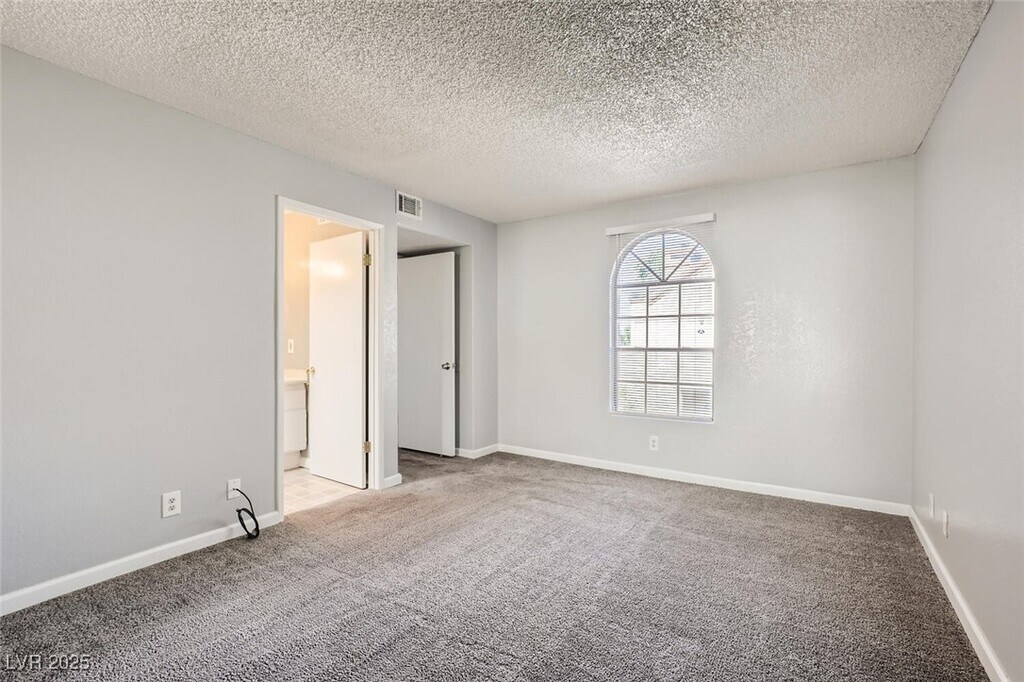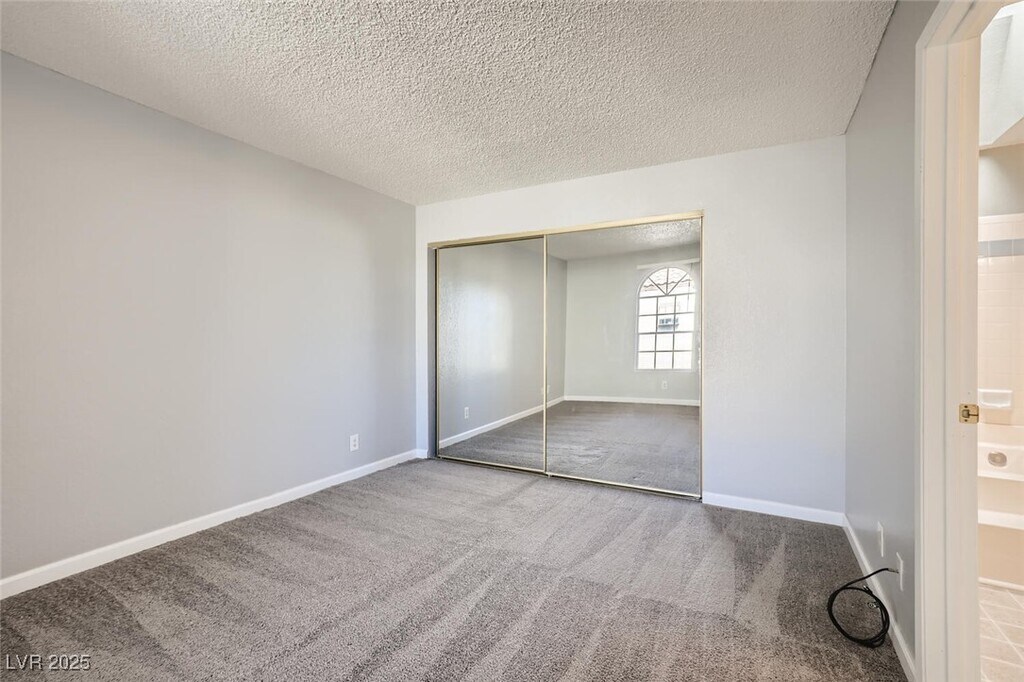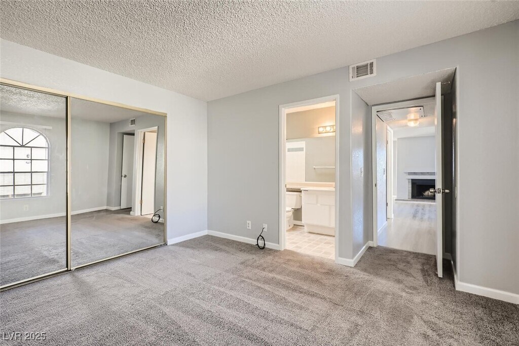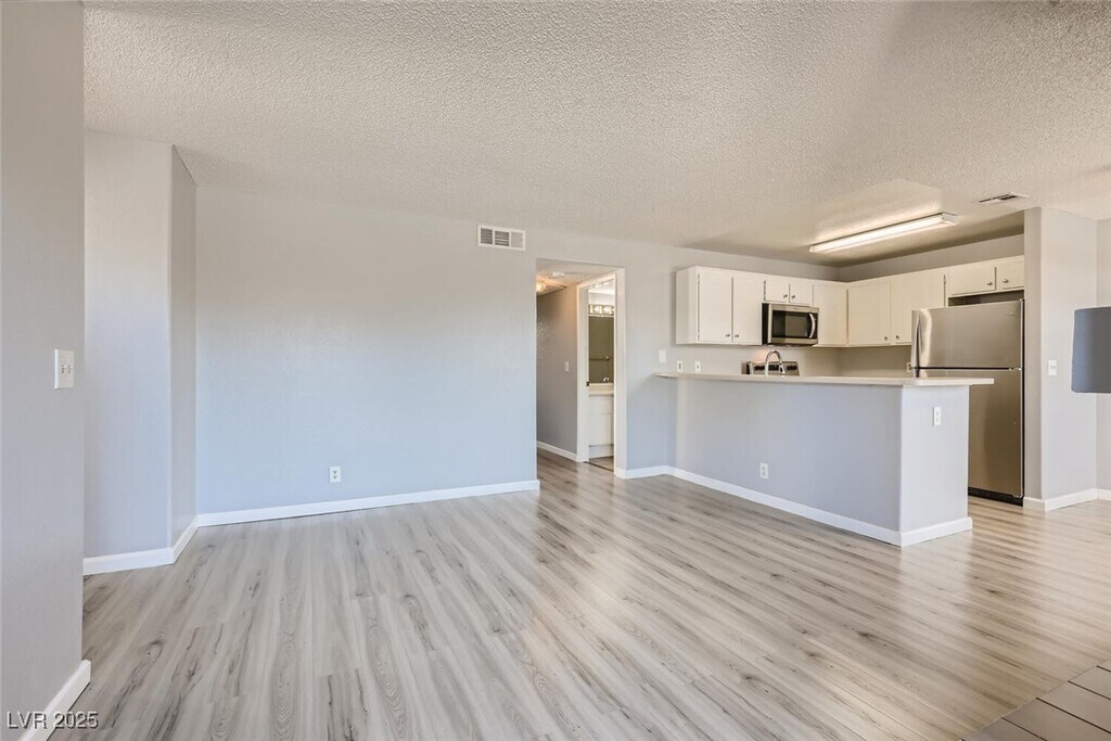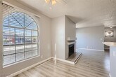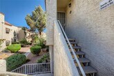 Charming 2nd-story condo in Las Vegas, NV. Situated in a gated community on the east side of the valley, residents enjoy access to a pool, spa, and convenient proximity to shopping, schools, and major highways. This 889 sq. ft. unit features an open floor plan with wood laminate flooring in the main living area, a cozy gas fireplace, ceiling fan with light, and window and door blinds throughout. The kitchen includes a breakfast bar, laminate countertops, and all brand-new appliances. The primary bedroom offers carpet flooring, mirrored closet doors, and a full en-suite bathroom with vinyl flooring and a tub/shower combo. The second bedroom is also carpeted with window blinds and is adjacent to a second full bathroom with similar finishes.