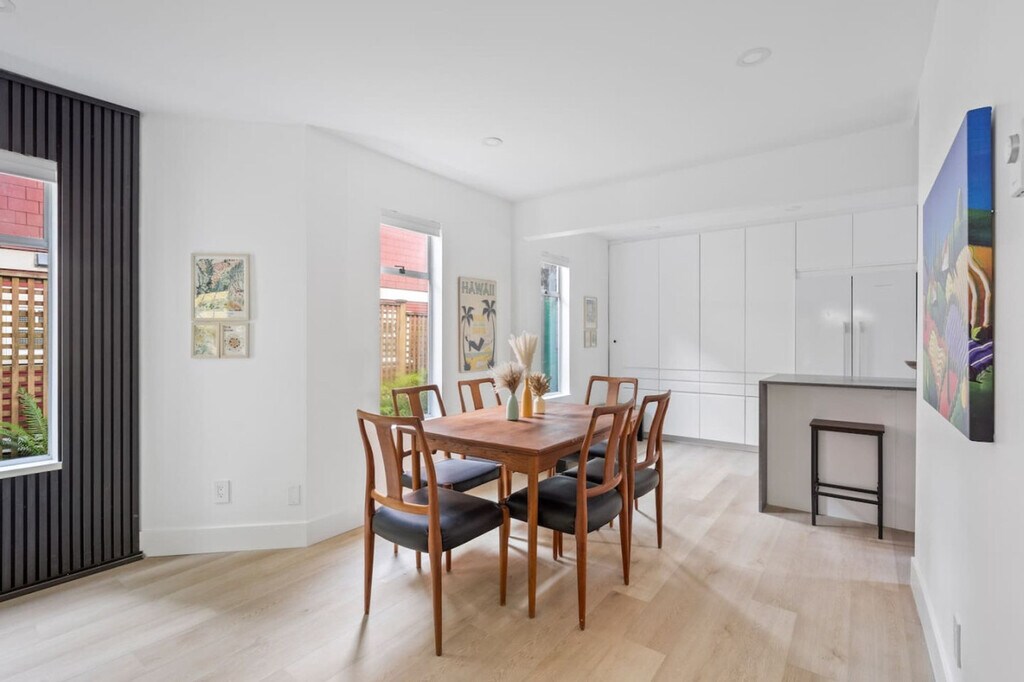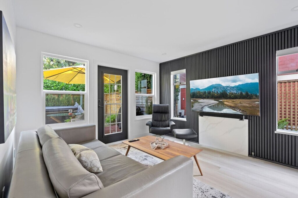 Feel at home in this contemporary duplex located in Vancouver’s vibrant Kitsilano neighborhood. This home features 2 bedrooms and 2 bathrooms. Designed for families or small groups, this home combines modern comfort with functional design. The bright, open-concept layout includes a full-size, fully equipped kitchen, ideal for home-cooked meals, and a cozy living room with a Smart TV and comfortable seating. The master bedroom has a king-size bed and en-suite bathroom, while the second bedroom has a queen-size bed. Enjoy the private front and backyards for outdoor relaxation. Street parking is available directly in front of the property, typically without restriction. Located in a peaceful yet walkable area, this home is close to cafes, shops, and parks. It's just minutes from Kitsilano Beach and West 4th Avenue’s trendy shops and restaurants. YVR Airport is a 20-minute drive away, and downtown Vancouver is a 5-minute drive. Grocery stores and pharmacies are a 7-minute walk, and restaurants and shops are a 10-minute walk. No parties or smoking are permitted in or on the property. Hot tub usage is not permitted past 9pm. Any breaking of rules will result in minimum $1000 fine. The home is completely private but situated on a duplex property, so you may occasionally see adjacent neighbors. [SI]