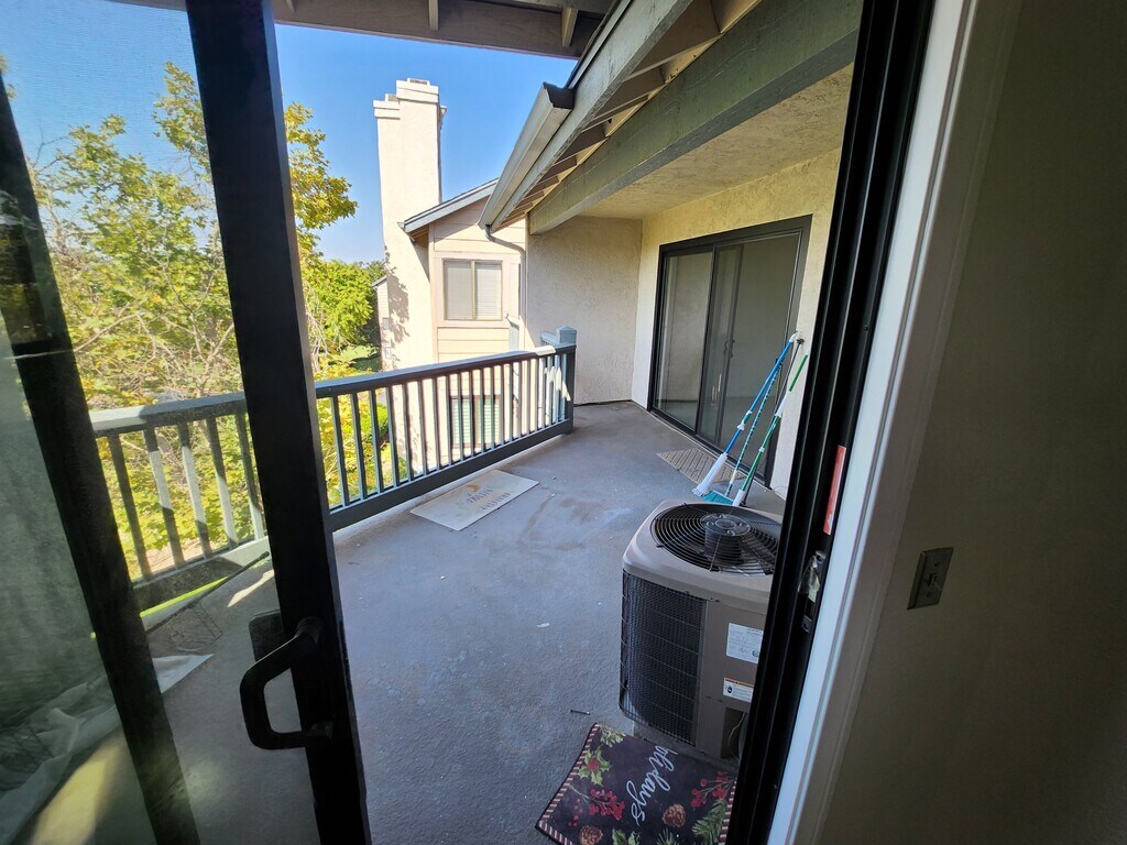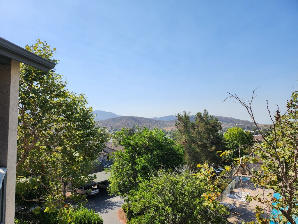 Bright and spacious upstairs 2-bedroom condo located in the desirable Ranchwood community in Rancho San Diego / La Mesa. This home features cathedral ceilings, beautiful natural light, and a private balcony offering romantic sunset and mountain views. The open layout, high ceilings, and large sliding doors create an airy living space, while the balcony offers a peaceful place to relax and enjoy the views. Home Features: • 2 Bedrooms / 1 Bathroom • Upstairs unit with vaulted cathedral ceilings • Private balcony with gorgeous views • Sliding glass doors from living room and primary bedroom • In-unit washer & dryer • Gas stove • Refrigerator • Air Conditioning • Beautiful wood flooring in bedrooms • Tile flooring in kitchen, living room, and dining area Parking • 2 assigned parking spaces (1 is a covered carport space) Community Amenities • Large swimming pool • Tennis courts • Spacious greenbelt areas • Quiet, well-maintained community Great Location • Rancho San Diego / La Mesa area • Close to shopping, restaurants, Target, movie theater, and gym • Near bus stop • Close to hiking trails and the National Wildlife Refuge • Approximately 15 minutes to Downtown San Diego (no traffic)