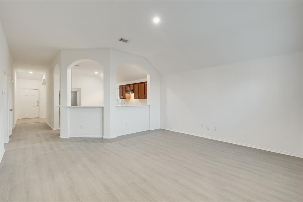 Beautifully remodeled home backing to a peaceful greenbelt, offering privacy and a serene setting. This home features easy-to-maintain laminate flooring throughout, with stylish tile flooring in the bathrooms. The spacious primary suite boasts vaulted ceilings, a new double vanity, and a spa-like bathroom with a separate shower and soaking tub. The open-concept kitchen overlooks the living area and is appointed with quartz countertops, a subway tile backsplash, and brand-new appliances—perfect for both everyday living and entertaining. At the front of the home, a versatile dining room or flex space provides the option for a formal dining area or a home office. Three additional bedrooms are tucked away down a quiet hallway, along with a secondary full bathroom. The laundry room is conveniently located inside the home, and the two-car garage offers ample storage and parking. Situated on a very quiet street at the end of the neighborhood, this home offers a rare combination of modern updates, functional layout, and tranquil surroundings. MLS ID 5772037