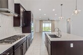 our new home awaits here in the gated Community of Crystal Canyon! This beautiful single-level residence offers 2 beds + den, 2.5 baths, & a 2-car garage. Great curb appeal with a low-care landscape, paver driveway & pathway, and stone accent facade. The fabulous interior showcases a neutral palette, abundant natural light, tall ceilings, recessed lighting, and tile flooring w/carpet in bedrooms. You'll love the spacious great room paired with sliding doors to the back! The gourmet kitchen boasts quartz counters, a pantry, a stylish tile backsplash, espresso cabinetry w/crown molding, SS appliances w/cooktop gas & wall ovens, and an island w/pendant lights over the breakfast bar. The versatile den can be an office! The primary bedroom has an ensuite with dual sinks & a walk-in closet. The secondary bedroom also includes its own full bathroom for added comfort. Enjoy the impressive backyard with paver-covered & open patios, artificial turf, & a fire pit for chilly nights! Welcome home!