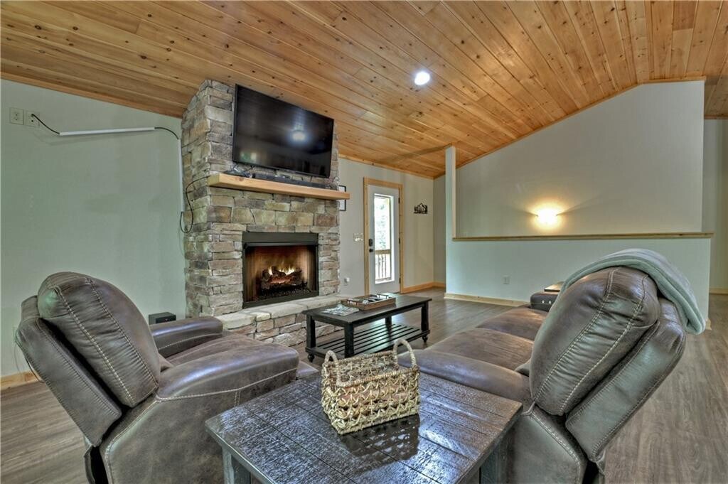 Only a two-minute walk to the River and the East Park! Welcome to this turnkey fully furnished mountain retreat! Situated on an elevated double lot,all the privacy and serenity of mountain living can be yours. The open concept main level features a newly renovated kitchen with granite countertops,a separate dining room,and large living space with a beautiful,stacked stone fireplace. Off this level features an over-sized balcony with a private wooded view and custom-made seating ready and waiting for your morning coffee time. Downstairs features an additional bedroom,full bathroom with double vanity,and a large Den that can be utilized as a 3rd bedroom. This level also features an additional large outdoor deck perfect for grilling and relaxing. On this double lot you could build a 2nd income property or just enjoy the additional land for yourself! A quick stroll down the hill you’re greeted by Coosawattee East Park which features a vast stretch of riverfront,acres of picnic areas,camping and greenspace for all to enjoy. This cabin is also situated just a few minutes from the gate so the access in and out of the community is superb. Coosawattee offers a wide range of activities within the resort,including hiking,fishing,tubing,swimming and so much more. Downtown Ellijay and Blue Ridge are a short drive away,so all the shopping and dining experiences you seek are nearby! MLS ID 7694223