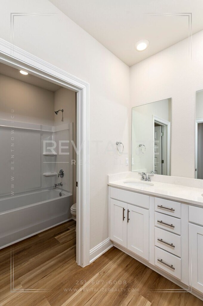 Be the first to live in this beautifully designed new construction home in the sought-after Harvest Green East community. Offering 4 bedrooms, 2.5 bathrooms, and a versatile flex room that could double as a 5th bedroom, this home blends modern style with everyday functionality in a spacious, open layout. The heart of the home features a bright, open-concept living and dining area that flows seamlessly into a well-appointed kitchen with quartz countertops, a walk-in pantry, and stainless steel appliances, including an electric range, microwave, and dishwasher. The split floor plan provides extra privacy for the primary suite, which includes a walk-in closet, double vanity, soaking tub, tiled shower, and private commode. Luxury vinyl plank flooring runs throughout the home for a clean, contemporary feel. The home features convenient electronic keypad entry and a dedicated in-unit laundry room with washer and dryer hookups. An attached double garage and paved driveway provide easy parking and storage. Enjoy outdoor living with a covered front porch and rear covered patio, all situated on a spacious corner lot with a classic brick exterior. Built with energy-efficient construction, the home also features a versatile flex room that can serve as a home office, gym, playroom, or fifth bedroom. Located in the beautiful Fairhope area, Harvest Green East offers convenient access to Highway 181, award-winning schools, and community amenities, including a pool, pickleball courts, and scenic lakes. - 3 miles from Fairhope East Elementary School - 5 miles from Fairhope Middle School - 5 miles from Fairhope High School - 4.5 miles from Bayshore Christian School - 6 miles from Coastal Alabama Community College: Fairhope Campus - 1 mile from Wawa and Publix - 3 miles from Walmart Supercenter - 3.5 miles from Quail Creek Golf Course - 5 miles from Thomas Hospital - 6 miles from The Fairhope Pier - 8 miles from Fairhope Airport - 20 miles from Downtown Mobile - 30 miles from Gulf Shores Beach Tenant is responsible for power, water, sewer, gas, trash, and yard care. For more information or to schedule a viewing, please call . You may apply at: Application Fee: $75 (Per applicant, non-refundable. All adult residents (18+) must be named on the lease and are required to submit an application. Minimum requirements are a 620+ credit score, verifiable income of 3x the rent or more, and must pass a background check. No exceptions.) Security Deposit: $3,200 (Due upon application approval.) Administration Fee: $100 (Due upon lease signing) Pet Fee: $300 non-refundable pet fee (per pet with Owner approval, up to 2 pets) Rent: $3,200/mo RBP: $50/mo Total Monthly Payment (Rent + RBP* + Sewer): $3,250 At Revitalize Realty, we strive to provide an experience that is cost-effective and convenient. That’s why we provide a Resident Benefits Package (RBP) to address common headaches for our residents. Our program handles insurance, pest control, air filter delivery, utility set up, credit building, and rent rewards, at a rate of $50.00/month, added to every property as a required program. More details upon application. *If you provide your own insurance policy, the RBP cost will be reduced by the amount of the insurance premium billed by Second Nature Insurance Services (NPN No. 20224621). Residents will have access to the Online Portal by AppFolio, an easy, fast, and secure way to pay charges online, view payment history, and submit maintenance requests. Access your Online Portal from any mobile device by downloading the mobile app from the App Store or Google Play. Participation in the Housing Choice Voucher (HCV) Program is not available for this property. Approval is at the discretion of the Landlord or Property Manager. Managed by Revitalize Realty, LLC